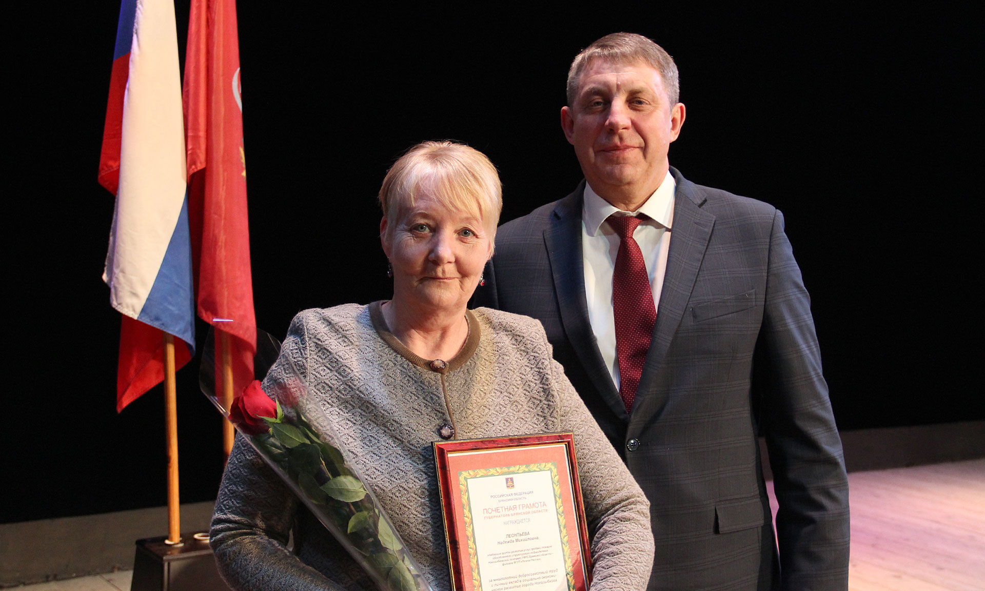 В завершение встречи Губернатор поздравил всех присутствующих женщин с приближающимся Международным женским днем. Александр Богомаз пожелал женщинам крепкого здоровья, удачи, всех благ и успехов в сохранении домашнего очага. Также в этот день Почетными грамотами и Благодарственными письмами наградили лучших тружеников Новозыбкова.