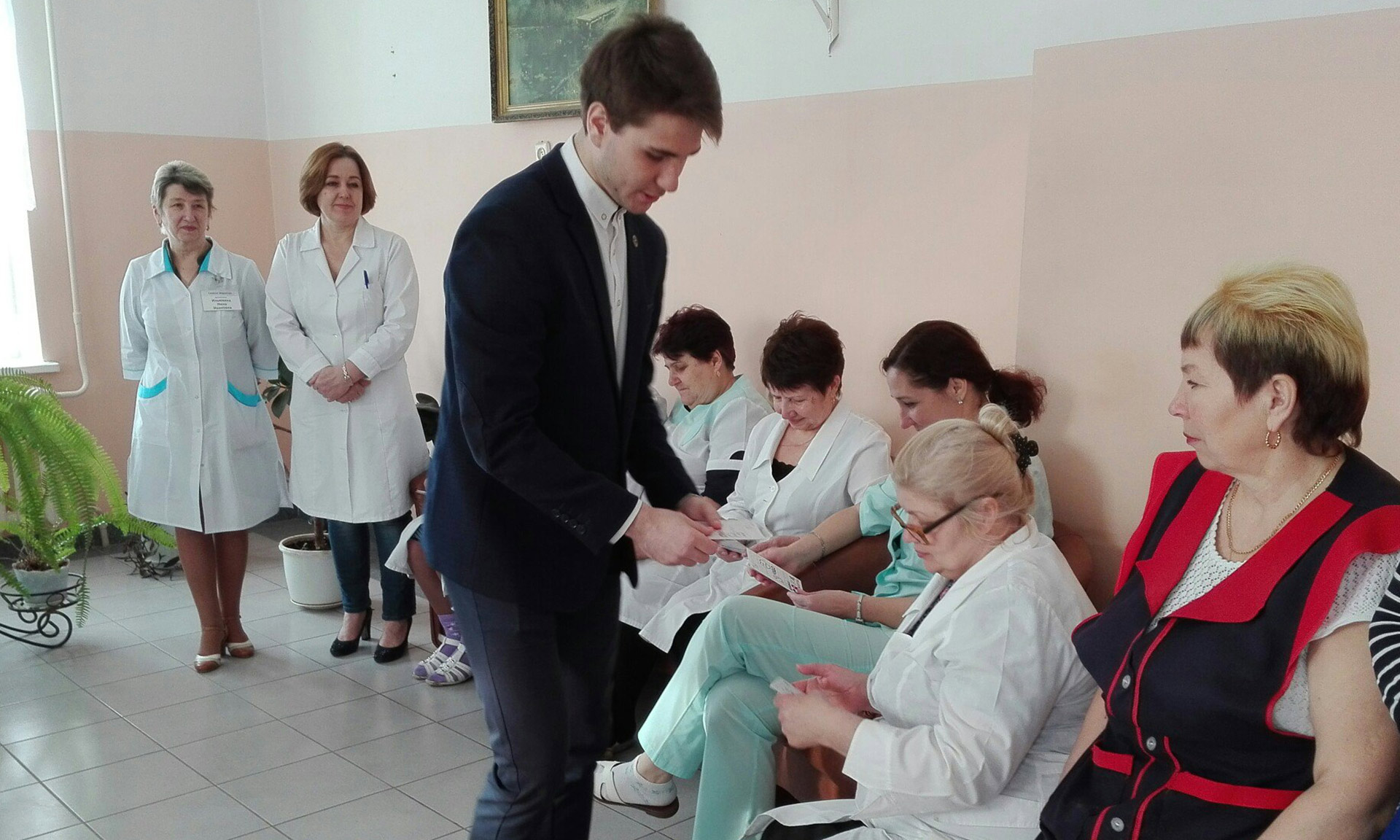 Ранним утром 7 марта волонтеры-медики посетили госпиталь для ветеранов войн, где подарили цветы и поздравительные открытки медицинскому персоналу и пациенткам. Юноши в парадных костюмах не только вручали букеты, но и читали стихи, чем очень порадовали ветеранов. Поздравления продолжились в Брянской городской поликлинике № 4 и Брянской городской больнице № 2.