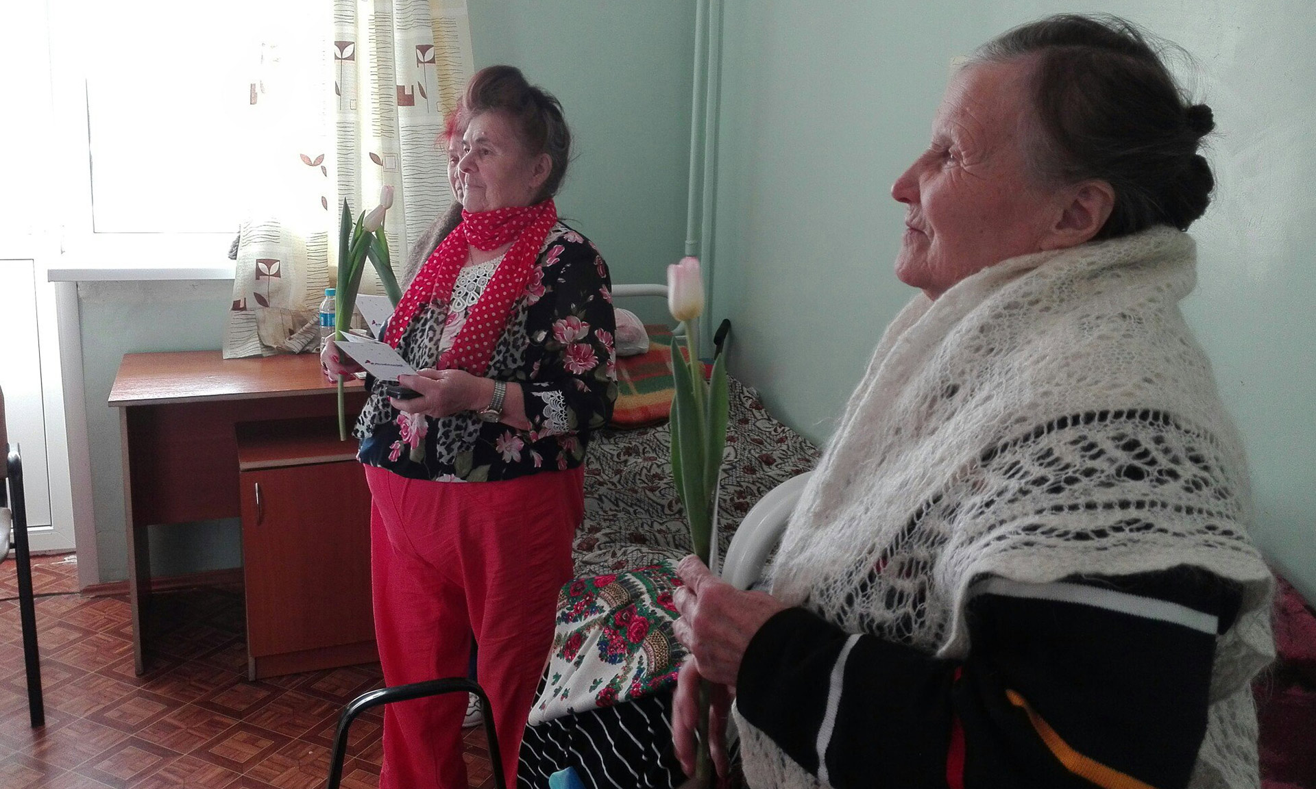 Для сотрудников и пациентов перечисленных лечебных учреждений праздничная акция стала приятным сюрпризом. Пациентки госпиталя для ветеранов войн благодарили волонтеров-медиков за поздравления, а глаза студентов — будущих средних медицинских работников — горели гордостью за этих героических женщин, за возможность сделать еще одно доброе дело — подарить радость и весеннее настроение им, любимым!