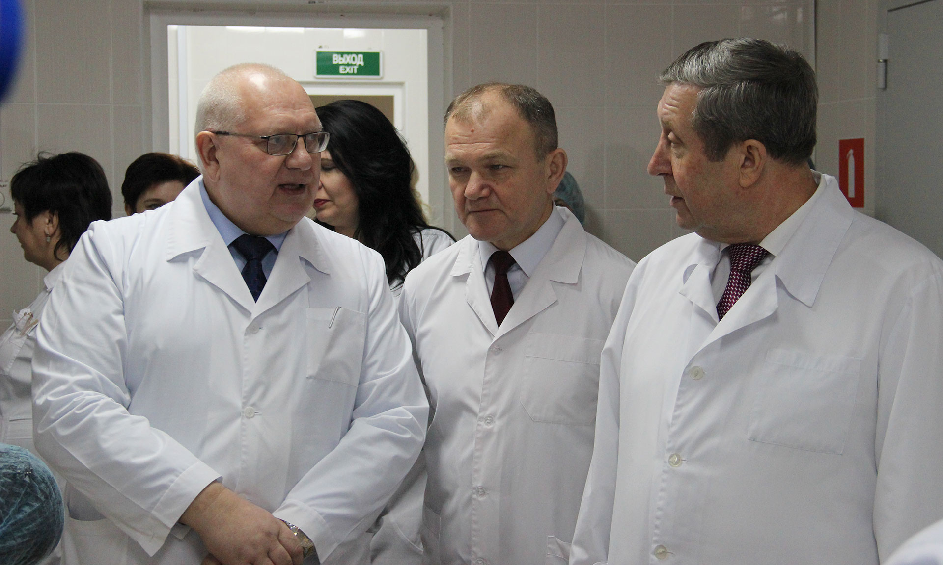 В ходе рабочей поездки в Брянский областной кардиологический диспансер Губернатор пообщался с сотрудниками Брянского областного кардиологического диспансера, среди которых заведующий кардиологическим отделением № 2 заслуженный врач Российской федерации Владимир Ковалев и заведующий отделением рентгенохирургических методов диагностики и лечения Алексей Соляник.