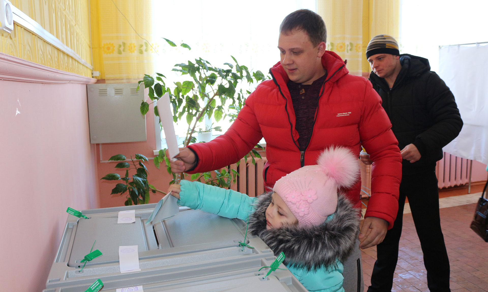 На избирательные участки поселка Навля Брянской области в день выборов президента приходит много молодых семейных пар. Среди них — Владимир и Елена Дубинины. Получив у члена участковой избирательной комиссии бюллетени, супруги сразу же направились к кабинкам для голосования — было понятно, что с выбором они оба определились заранее. Исполнив свой гражданский долг, они охотно ответили на вопросы корреспондента районной газеты «Наше время»: