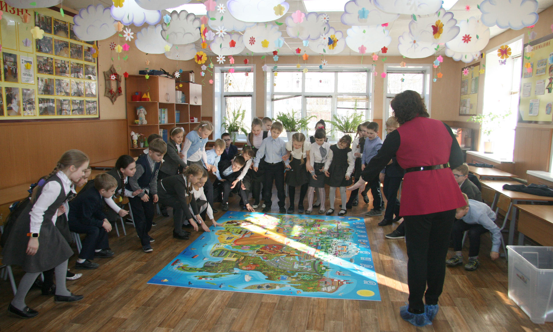 Школьникам была представлена игровая развивающая игра «Взросляндия. В мире профессий», представляющая собой напольную площадку 2×3 метра из элементов-пазлов с изображением всех отраслей: сельского хозяйства, транспорта, промышленности и других.