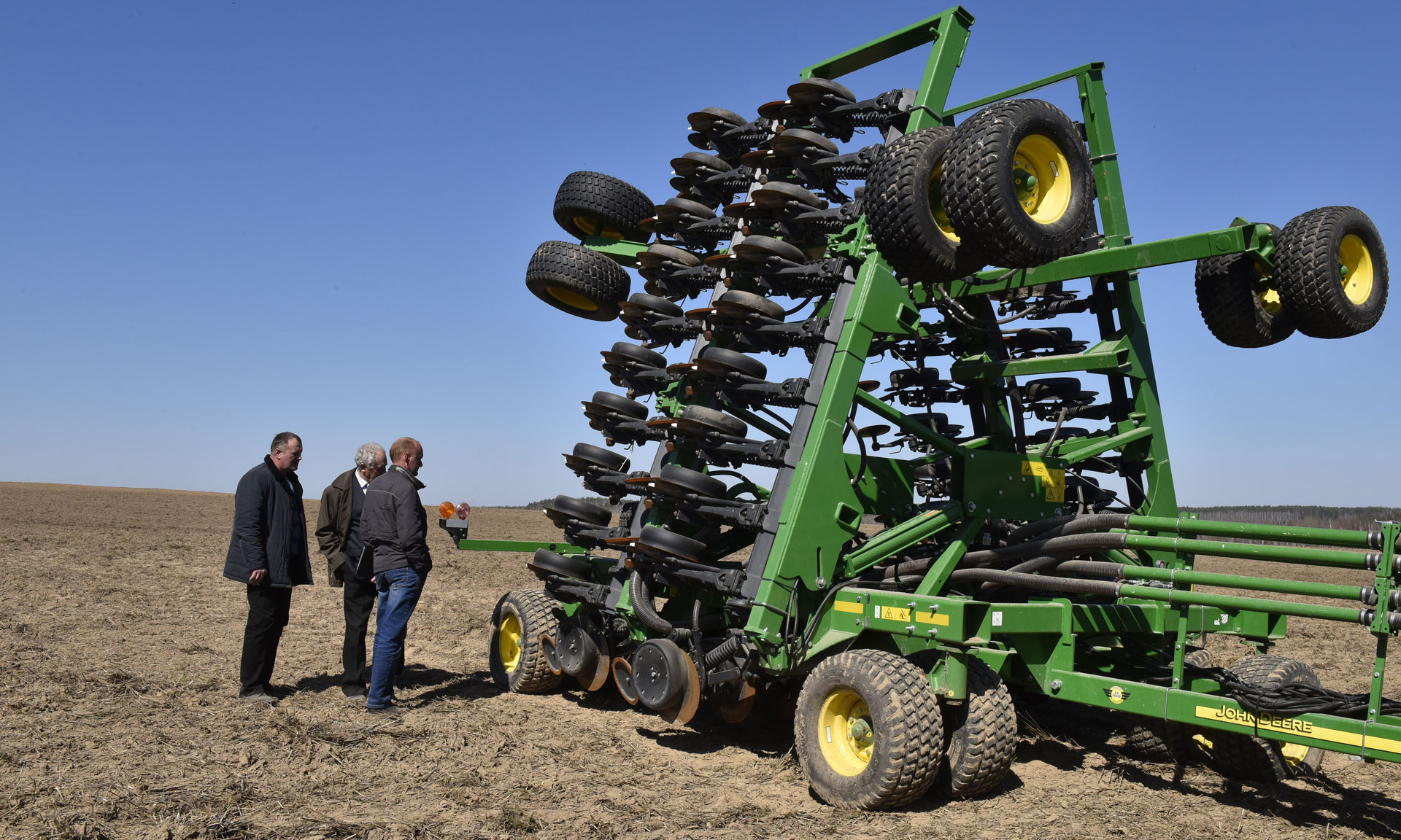 Практическая часть семинара прошла на полях ООО «Фемерское хозяйство Пуцко» в районе села Замишево. Управляющий хозяйства Михаил Сытый подробно рассказал о сортах и технологии возделывания культур, применяемых минеральных удобрениях и агрономических сроках проведения работ. Участники семинара осмотрели современную технику. Особый интерес вызвала сеялка Джон Дир, единственная в России такого класса. Своим опытом и впечатлениями от увиденного поделились успешные аграрии. Александр Лобынцев, например, напомнил коллегам о призыве Губернатора Брянской области Александра Богомаза внедрять современные технологии, чтобы получать урожайность зерновых не ниже 40 ц/га.