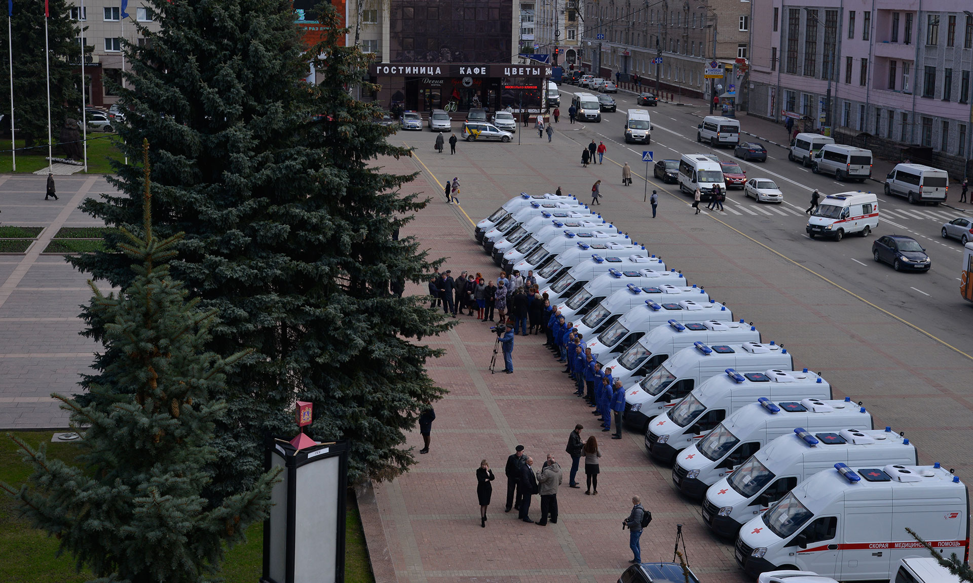 23 апреля на площади Ленина состоялась церемония передачи автомобилей скорой помощи учреждениям здравоохранения Брянской области.