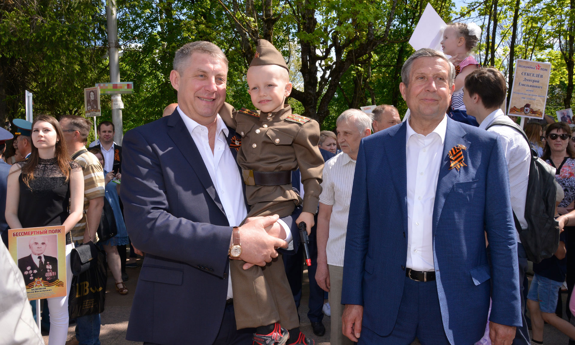 Вместе с многотысячным шествием в строю «Бессмертного полка» шел Губернатор Брянской области Александр Богомаз с сыновьями, которые несли портреты своих дедушек — старшего лейтенанта Красной армии Василия Титовича Богомаза и полковника Красной армии Демьяна Филипповича Боровика.