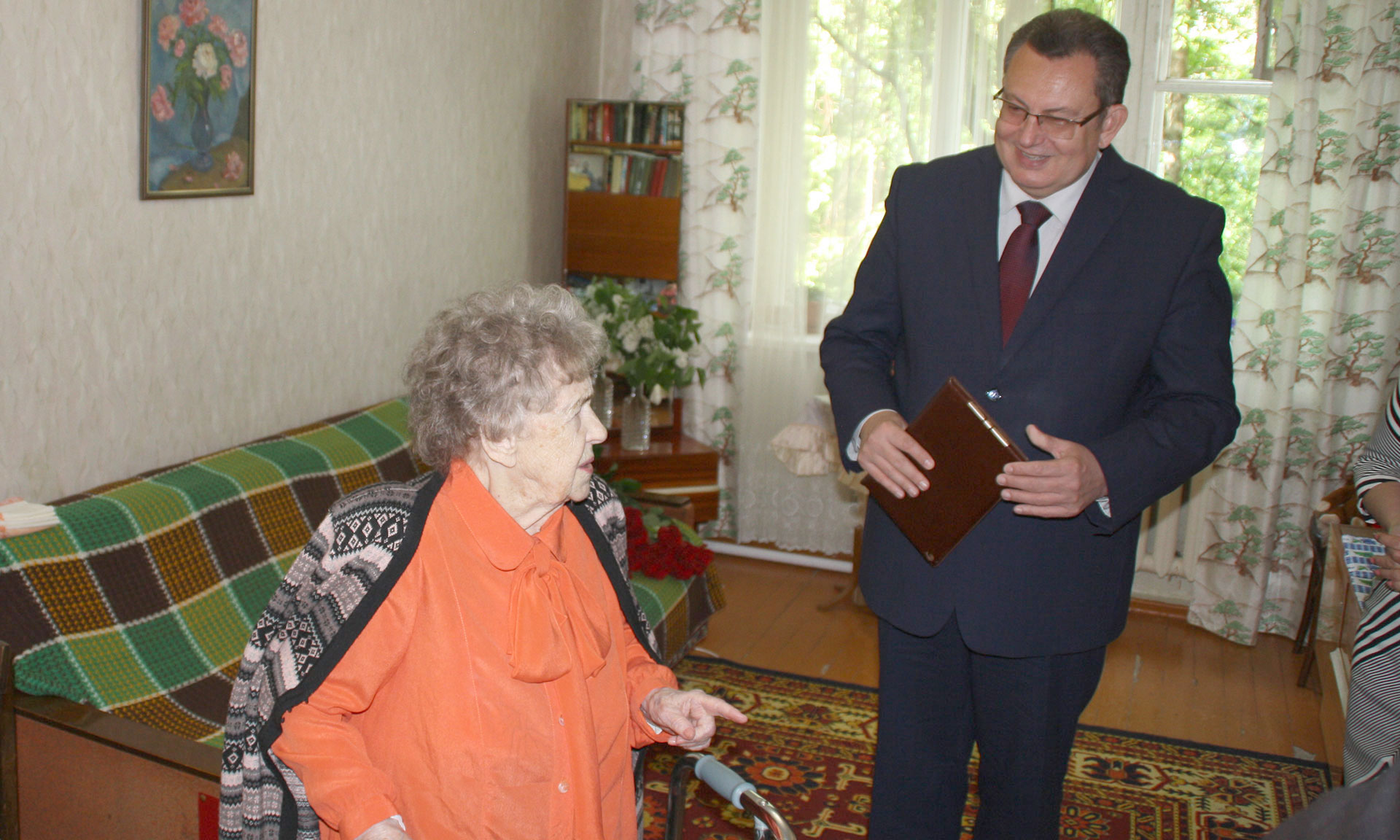 17 мая Губернатор Александр Богомаз, ректор Брянского государственного университета Андрей Антюхов, первый заместитель директора департамента образования Брянской области Татьяна Кулешова навестили Александру Алексеевну Бычкову, которой в марте исполнилось 97 лет.
