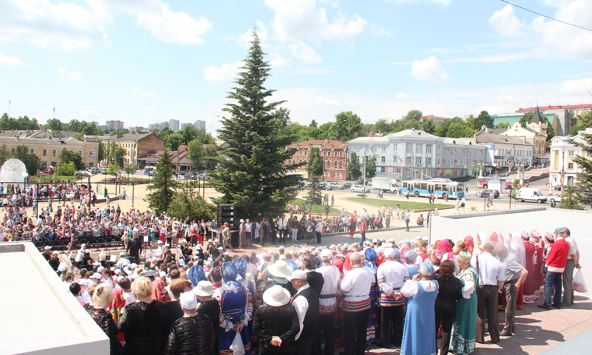 Затем состоялся большой праздничный концерт. Перед участникам торжества выступили ансамбли народной музыки «Ватага», «Надея», хоровая группа народного ансамбля песни и пляски «Любавушка», народный фольклорный ансамбль «Дебряночка», народный ансамбль русской песни «Околица», образцовый фольклорный ансамбль «Зарянка», народный ансамбль «Ивушки», народный ансамбль «Родные напевы», а также хоры детских школ искусств № 1, 2, 3, 6, 10, детской хоровой школы и многие другие.