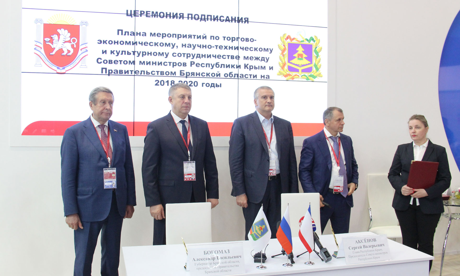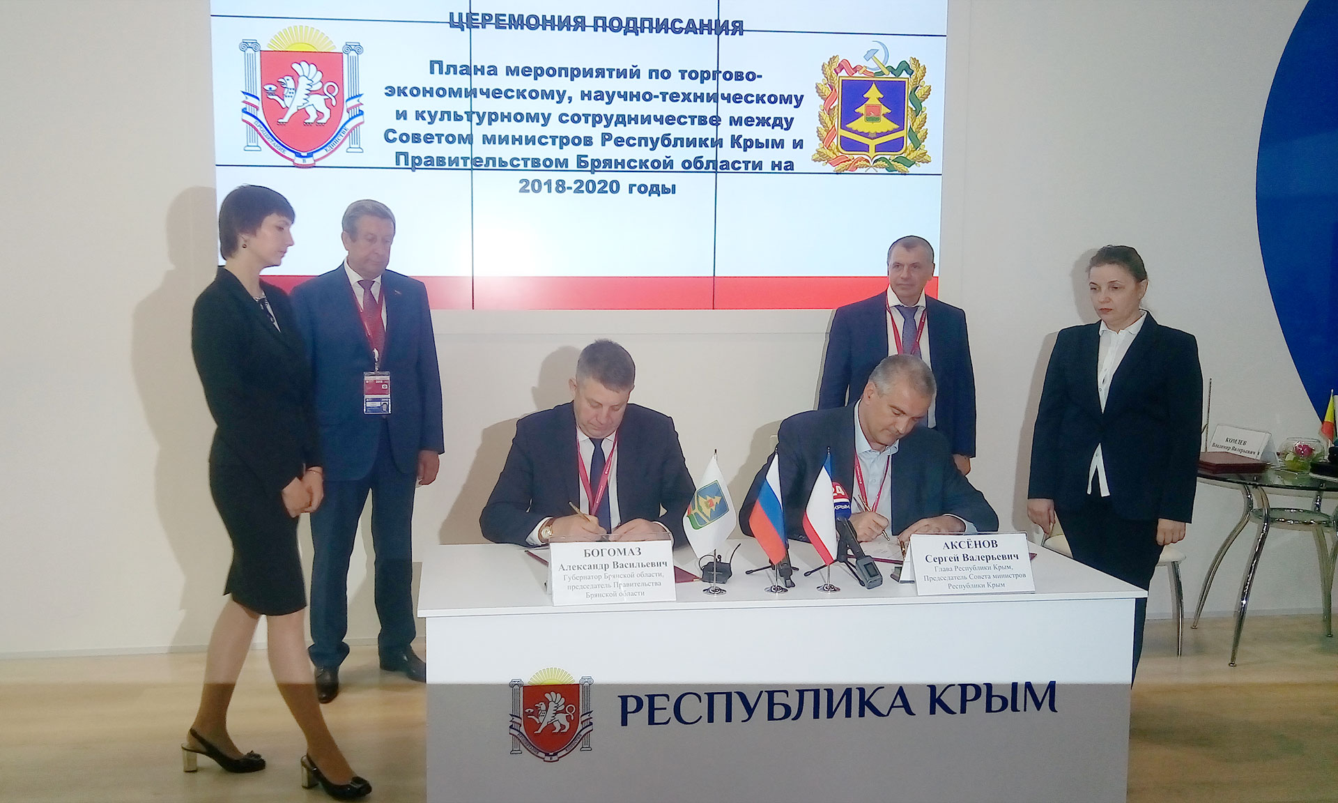 Соглашение подписано между Правительством Брянской области и Советом министров Республики Крым на 2018–2020 годы. Оно предусматривает сотрудничество в торгово-экономической и научно-технической, дорожно-транспортной сферах, сельском хозяйстве, образовании, промышленности, культуре и туризме, физической культуре и спорте, здравоохранении, в области охраны окружающей среды и рационального использования природных ресурсов, в области труда и занятости.