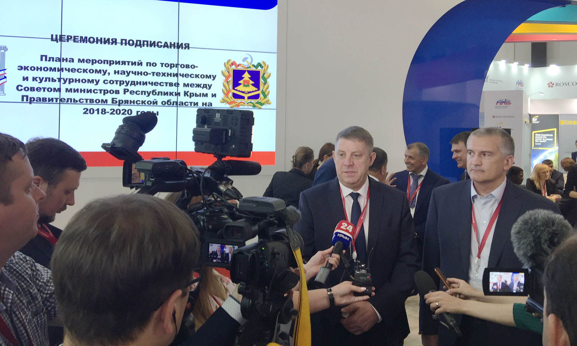 25 мая на полях Петербургского международного экономического форума Губернатор Александр Богомаз и Глава Республики Крым Сергей Аксенов подписали план мероприятий по торгово-экономическому, научно-техническому и культурному сотрудничеству.