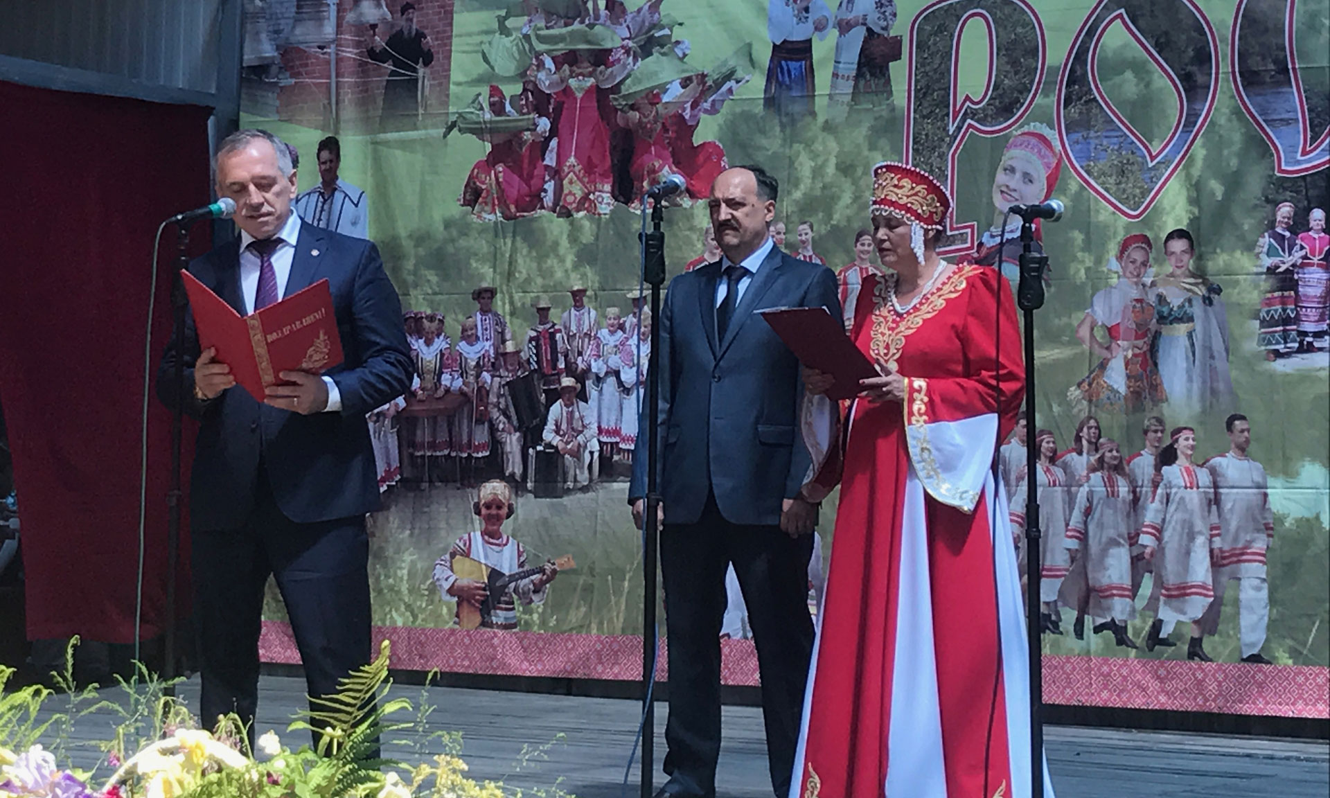 После того, как глава Трубчевского района Сергей Ященко объявил 33-й праздник «На земле Бояна» открытым, Николаем Гавриловичем — от Беларуси, Анатолием Мироненко — от Украины и Владимиром Сорочкиным — от России был поднят флаг праздника.