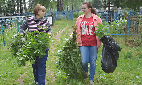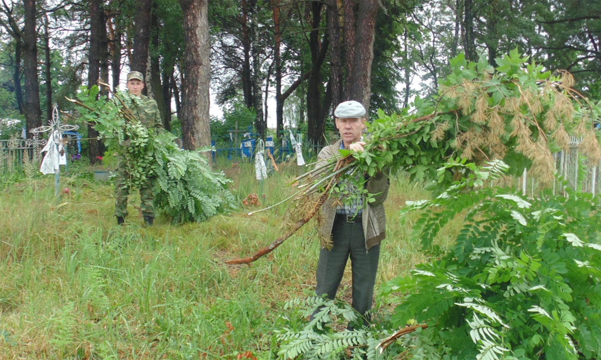 С самого утра работа идет на многих сельских кладбищах, где дело есть для всех. Мужчины вырубают и выпиливают поросли уже этого года, кустарники и выносят ветви. Женщины пропалывают клумбы, приводят в надлежащий вид могилы ветеранов. В целом же, работники организаций и предприятий района убирают прилегающие территории.