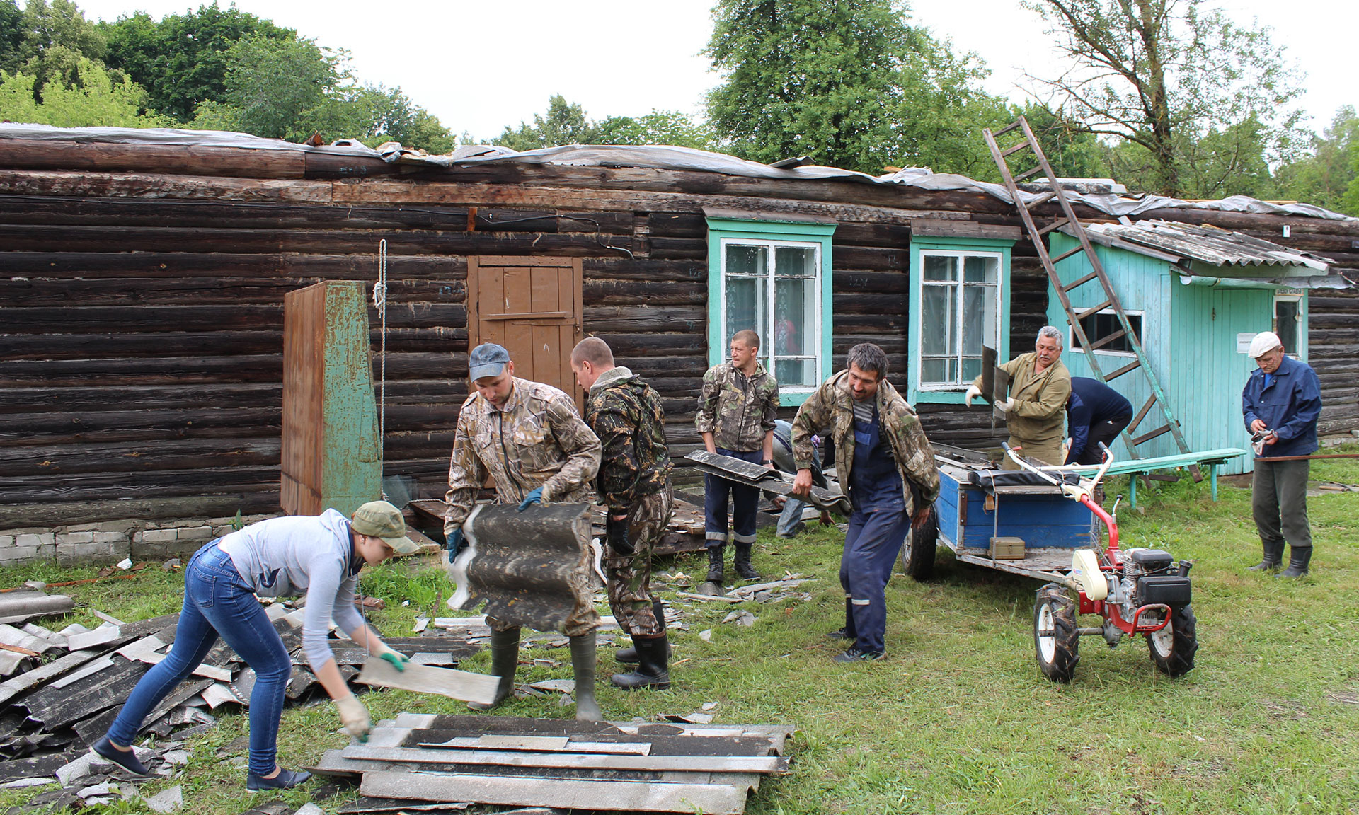 Самый важный из запланированных в Жуковском районе субботников состоялся. В Летошниках люди пришли поучаствовать в возрождении школьного музея боевой славы. Крыша музея, расположенного в отдельно стоящем здании не выдержала зимних снегопадов 2018-го года. Восстановление требует ресурсов — финансовых и человеческих. Организацию работ взял на себя глава Жуковского района Владимир Шуравко. Многие неравнодушные люди откликнулись на призыв. Вчера был проведён демонтаж кровли. В непростом деле посодействовали коммунальные предприятия района: ОАО «Жилкомхоз» (руководитель Игорь Гайда), МУП «Водоканал»(гендиректор Фёдор Пранов), ОАО «Коммунальщик» (гендиректор Алексей Парфеньев). После демонтажа нужно было навести порядок вокруг здания, удалить строительный мусор, отсортировать пригодные к использованию элементы. Этим и занялись летошницкие добровольцы, принявшие участие в субботнике.