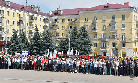Отдавая дань памяти тем героическим годам, в едином порыве участники мероприятия на площади Партизан вместе с артистами ансамбля народной музыки «Ватага» исполнили песню «Шумел сурово Брянский лес».