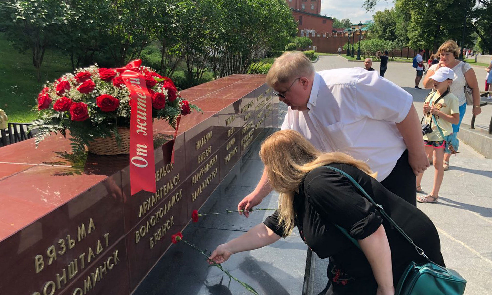 Представительство Брянской области в Москве во главе с заместителем Губернатора Геннадием Лемешовым в День Партизан и подпольщиков возложили от жителей Брянска корзину цветов у стен Кремля к аллее городов воинской славы-Брянску.