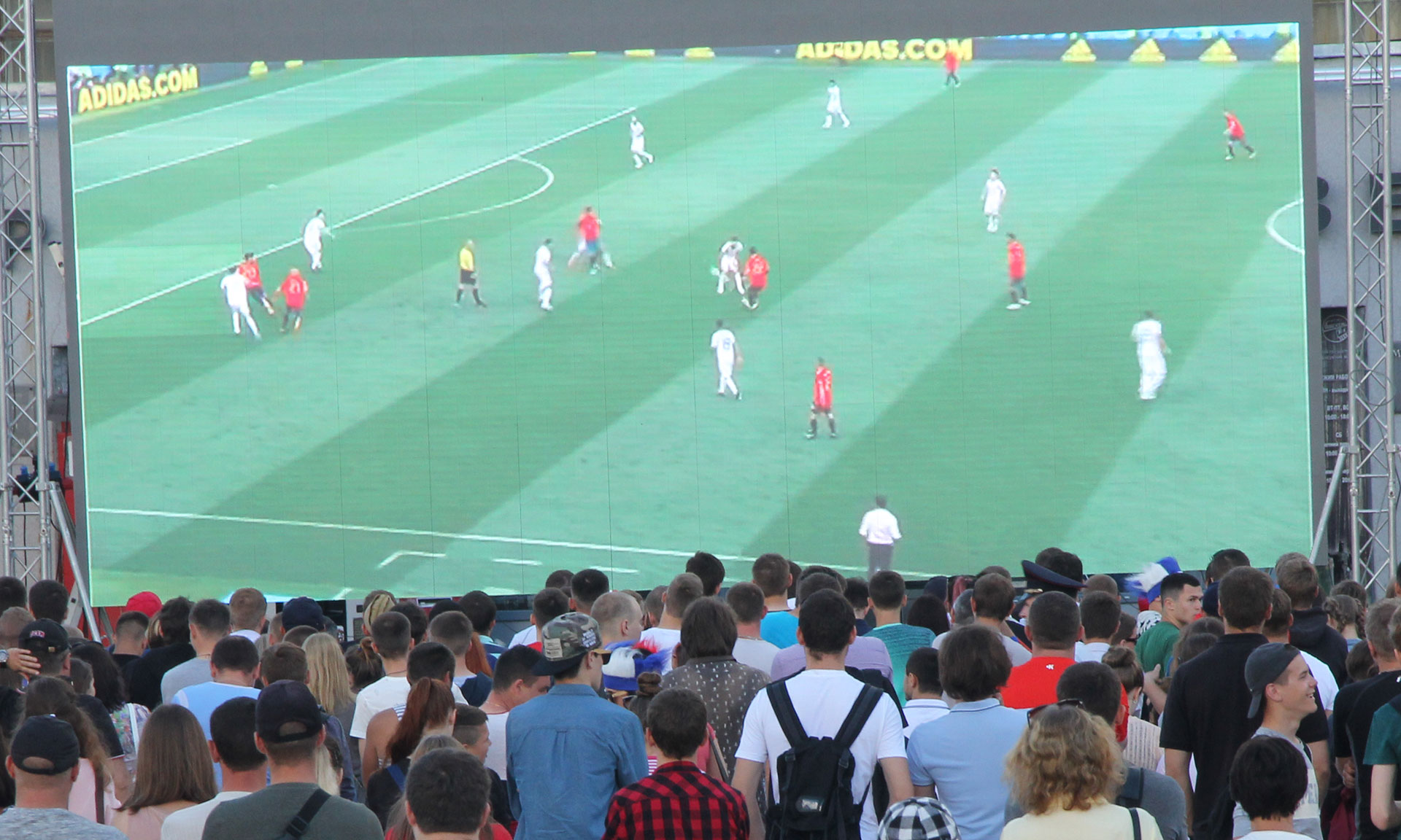 За упорной борьбой между сборными России и Испании следили все без исключения. 72011 человек следили за матчем на стадионе «Лужники», миллионы зрителей по всему миру следили за матчем по телевизору, сотни брянцев пришли на площадь Партизан Брянска, чтобы поддержать наших футболистов в этом важном матче. Каждый гол, забитый игроками сборной России, брянские болельщики встречали с воодушевляющими криками. Трансляция спортивного соревнования столь высокого уровня, впервые организованная в Брянске, при поддержке областных и городских властей, нашла поддержку у жителей и гостей областного центра. Брянцы целыми семьями пришли на площадь Партизан.