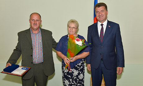 После поздравлений Николай Щеглов вручил памятные медали «За любовь и верность» семьям Брянской области, которые являются «старожилами» семейной жизни. Они прожили в браке 50 и более лет.