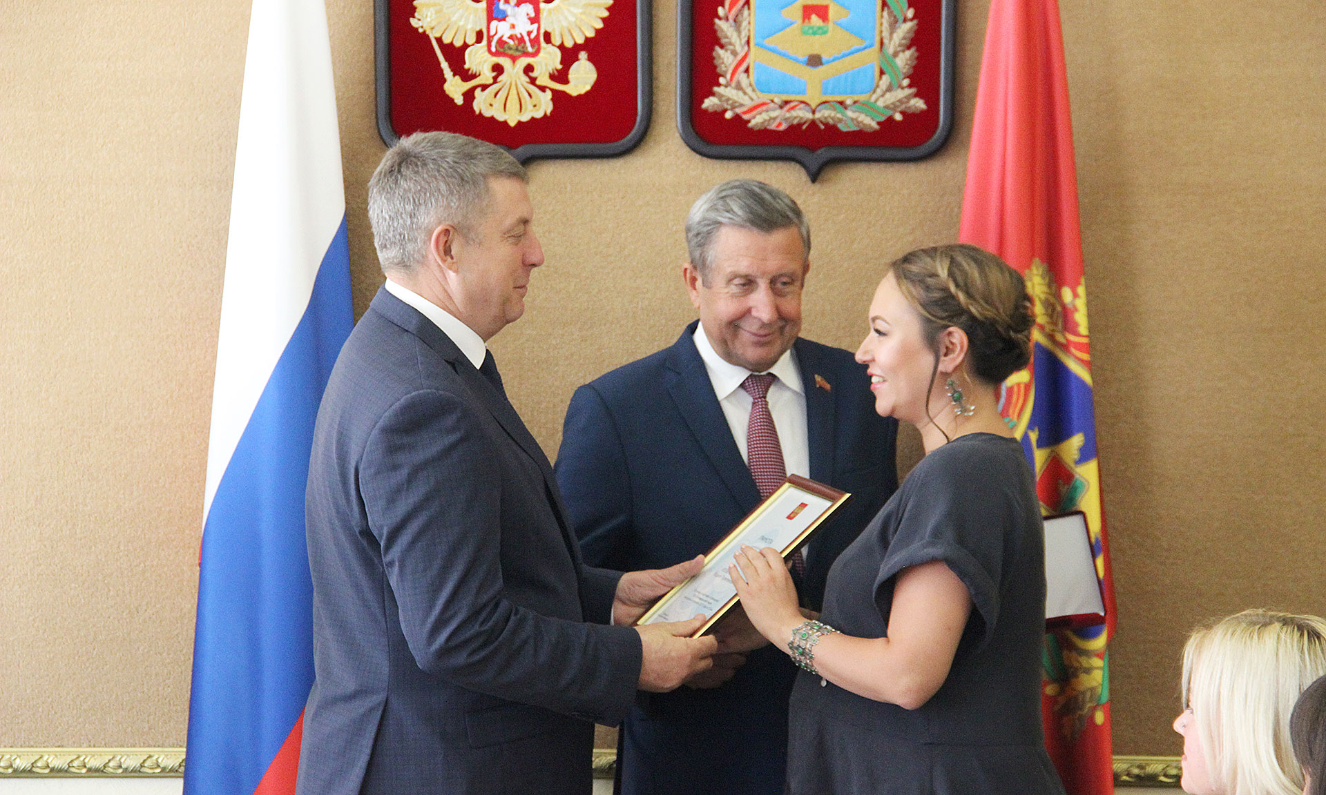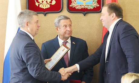 31 июля Губернатор Брянской области вручил грамоты Президента РФ и памятные медали «За вклад в подготовку и проведение XIX Всемирного фестиваля молодежи и студентов».