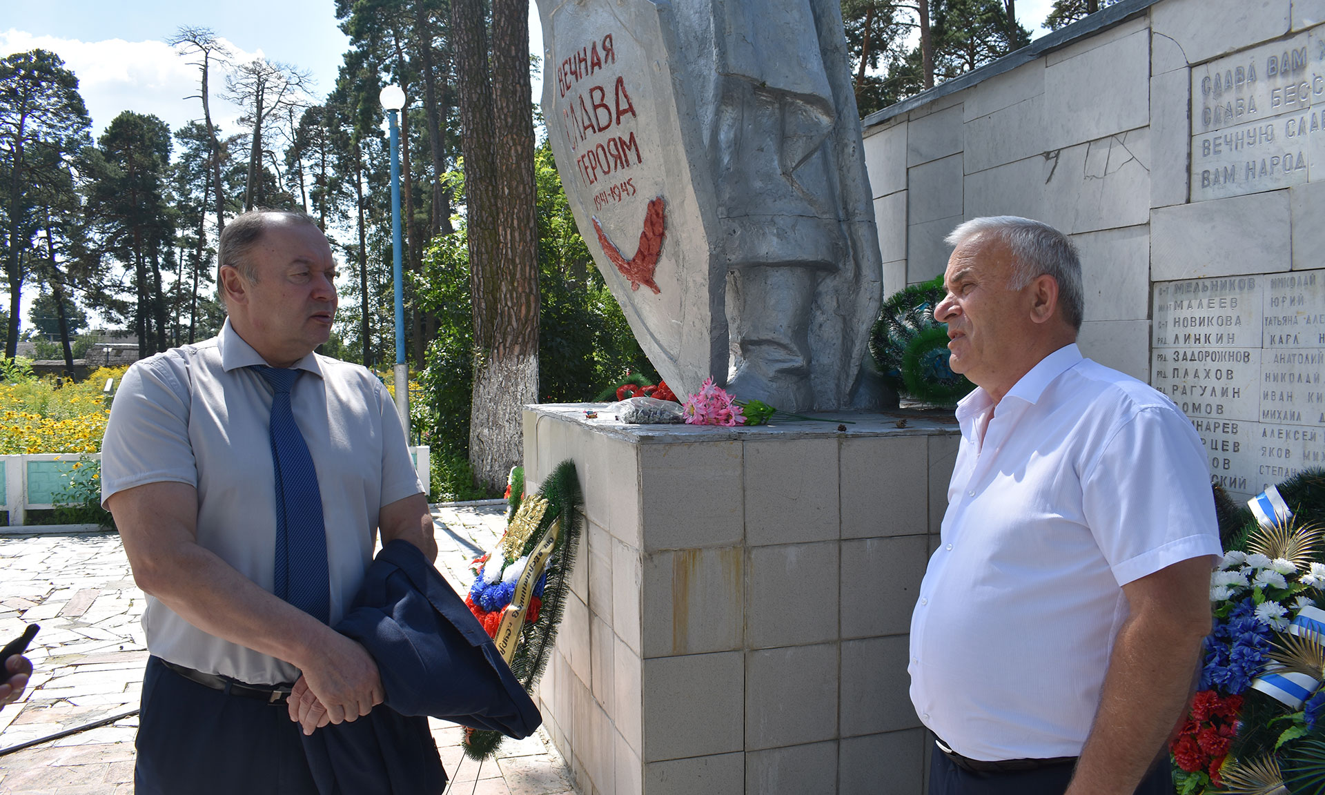 Юрий Филипенко, начальник управления физической культуры и спорта Брянской области Валерий Корнеев, глава администрации Суражского района Владимир Риваненко побывали на мемориале воинской славы на центральном кладбище, обсудили вопросы по благоустройству прилегающей к нему территории, а также запланированную на следующий год реконструкцию всего комплекса, почтили память воинов, защищавших Сураж, возложили цветы к памятнику танкистам и на Аллее Героев.