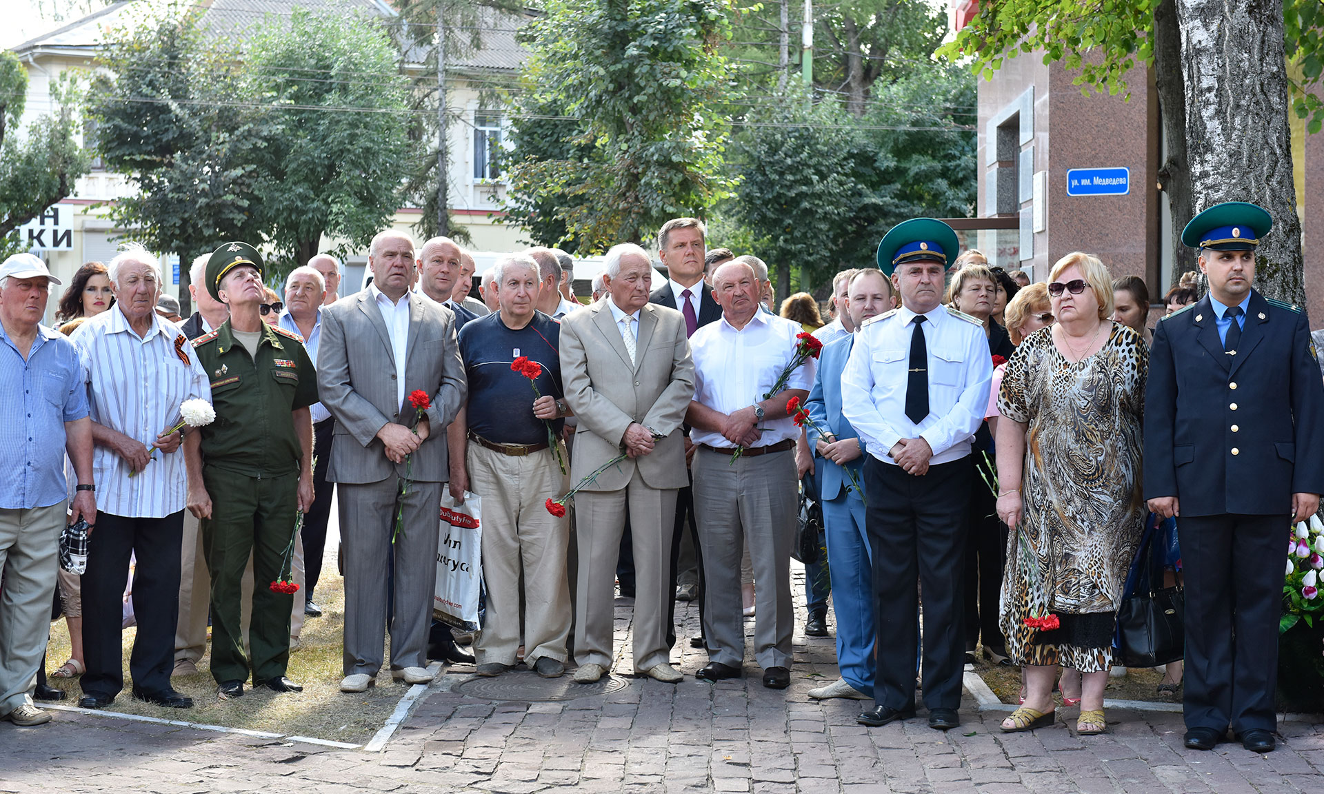 В торжественном мероприятии приняли участие заместитель Губернатора Брянской области Александр Коробко, заместитель председателя областной Думы Анатолий Бугаев, первый заместитель главы Брянской городской администрации Виктор Предеха, председатель Бежицкой территориальной депутатской группы Брянского городского Совета народных депутатов Наталья Моисеева, заместитель начальника управления ФСБ России по Брянской области Сергей Грезин, заместитель начальника пограничного управления ФСБ России по Брянской области Андрей Звезда, заместитель начальника управления Росгвардии по Брянской области Сергей Сердюк, военный комиссар Бежицкого и Володарского районов города Брянска Игорь Князев, председатель Бежицкого районного Совета ветеранов Ася Гавриловна Коношенко, председатель Брянской общественной организации «Ветераны органов безопасности» Александр Андреевич Полуешкин, председатель Совета региональной общественной организации «Ветераны-пограничники Брянской области» Александр Васильевич Калибердин, школьники, жители города.