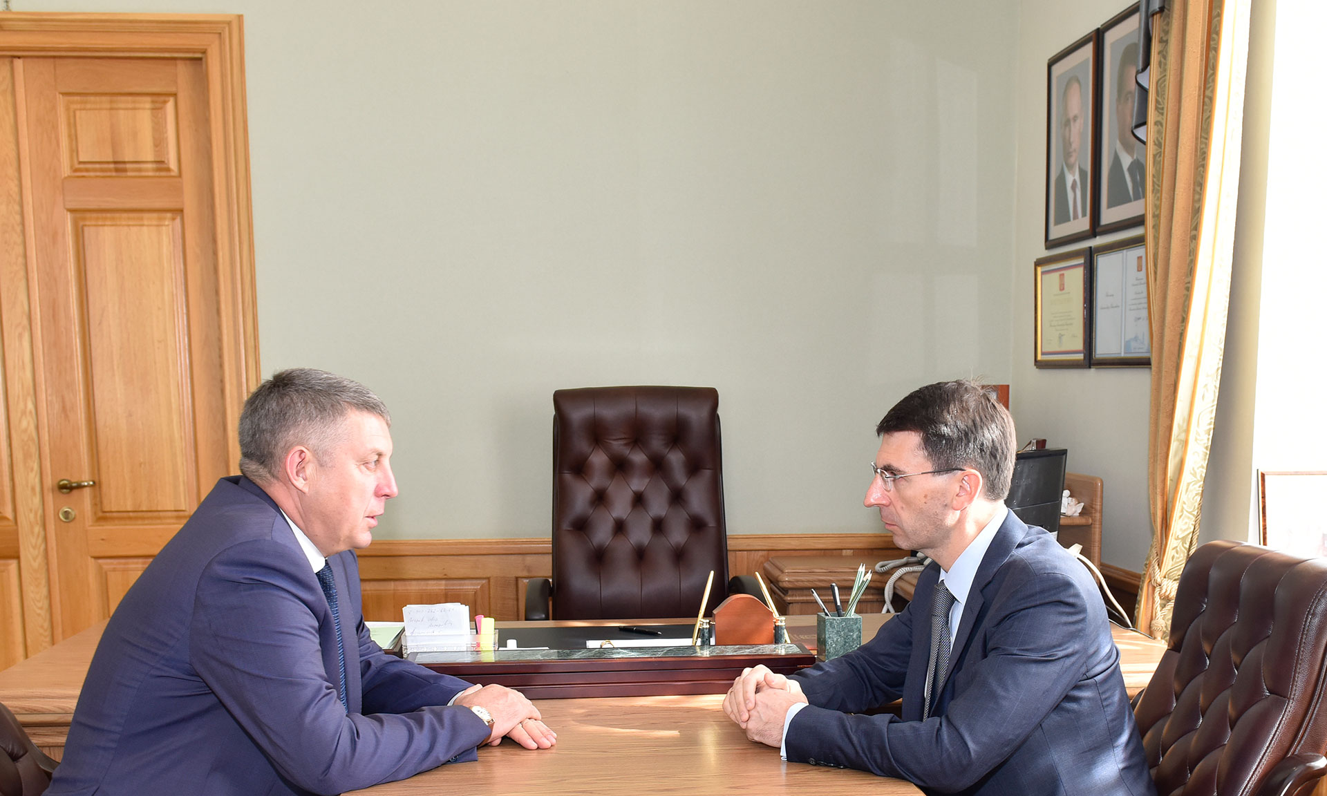 24 августа состоялась рабочая встреча полномочного представителя Президента РФ в Центральном федеральном округе Игоря Щёголева и Губернатора Брянской области Александра Богомаза. Обсуждалось социально-экономическое развитие Брянской области.