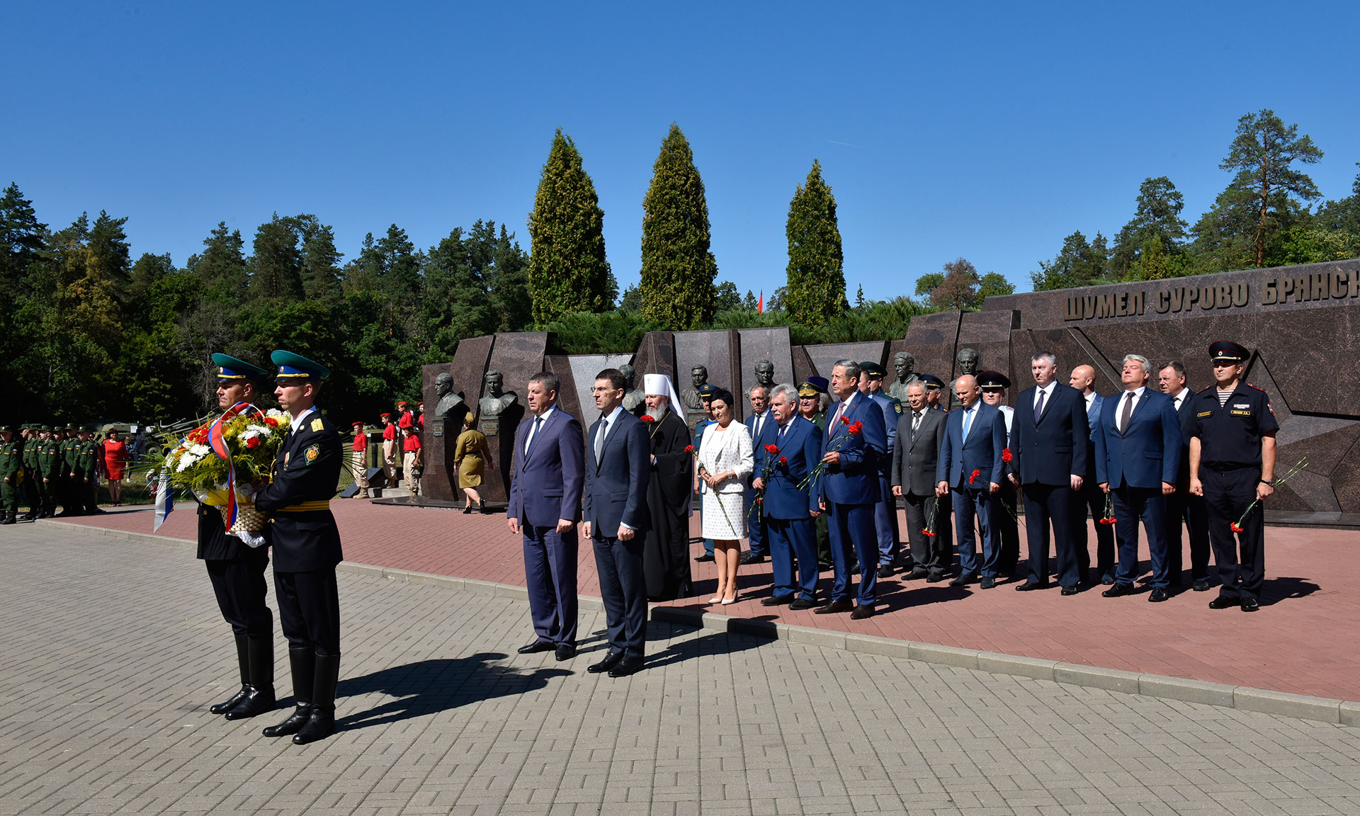 Также память Героев-освободителей почтили, главный федеральный инспектор по Брянской области Афанасий Киселёв, председатель Брянской областной Думы Владимир Попков, Митрополит Брянский и Севский Александр, начальник областного штаба «Юнармия», Герой России Александр Постоялко, депутаты Государственной Думы Федерального Собрания Российской Федерации Валентина Миронова, руководители федеральных органов государственной власти Российской Федерации в Брянской области.