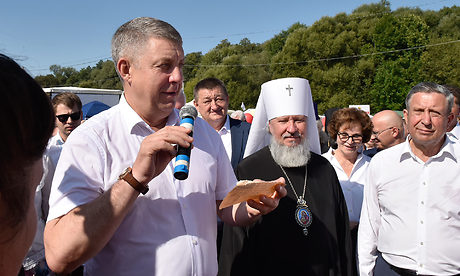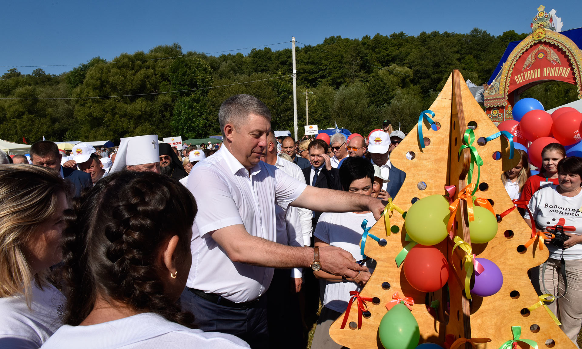 — Уважаемый Александр Васильевич, уважаемый почетный президиум, дорогие земляки, гости из ближнего приграничья, из других регионов, все кто прибыл сегодня, приехал, прилетел на нашу замечательную ярмарку! Собрались вы на таком молитвенном священном месте! Только сегодня я узнала о том, что, оказывается, освобождение Брянска начиналось именно отсюда, с Андреевского луга. Все здесь священно, все здесь наполнено святостью, молитвенностью и какой-то нашей русской, брянской традиционностью. Замечательно, что каждый год на ярмарке так много людей, кто-то пришел себя показать, достижениями похвалиться, удалью, умом, творчеством, кто-то — прикупить товар и, конечно же, все приходят сюда с радостным настроением.