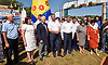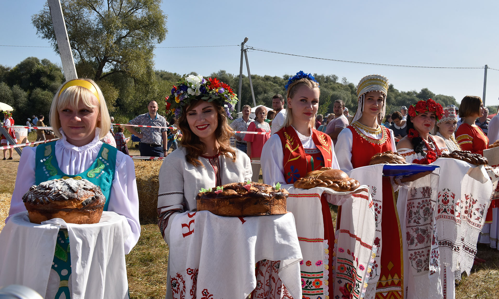 Невозможно представить «Свенскую ярмарку» без ярких содержательных подворий городов и районов Брянской области, как невозможно говорить о достижениях Брянщины без огромного вклада всех муниципальных образований региона. Главным признаком достатка во все времена был «хлеб на столе». Именно хлебом угощали почетных гостей и странствующих путников, считали его величайшим богатством. Брянская область за последние годы стала краем золотых пшеничных полей. В 2017 году в регионе собрано 1 миллион 851 тысяч тонн зерна, а в этом году мы приближаемся к 2 миллионам тонн. На сцену поднялись руководители органов местного самоуправления муниципальных районов и городских округов Брянской области с главным символом доброго урожая — снопом.