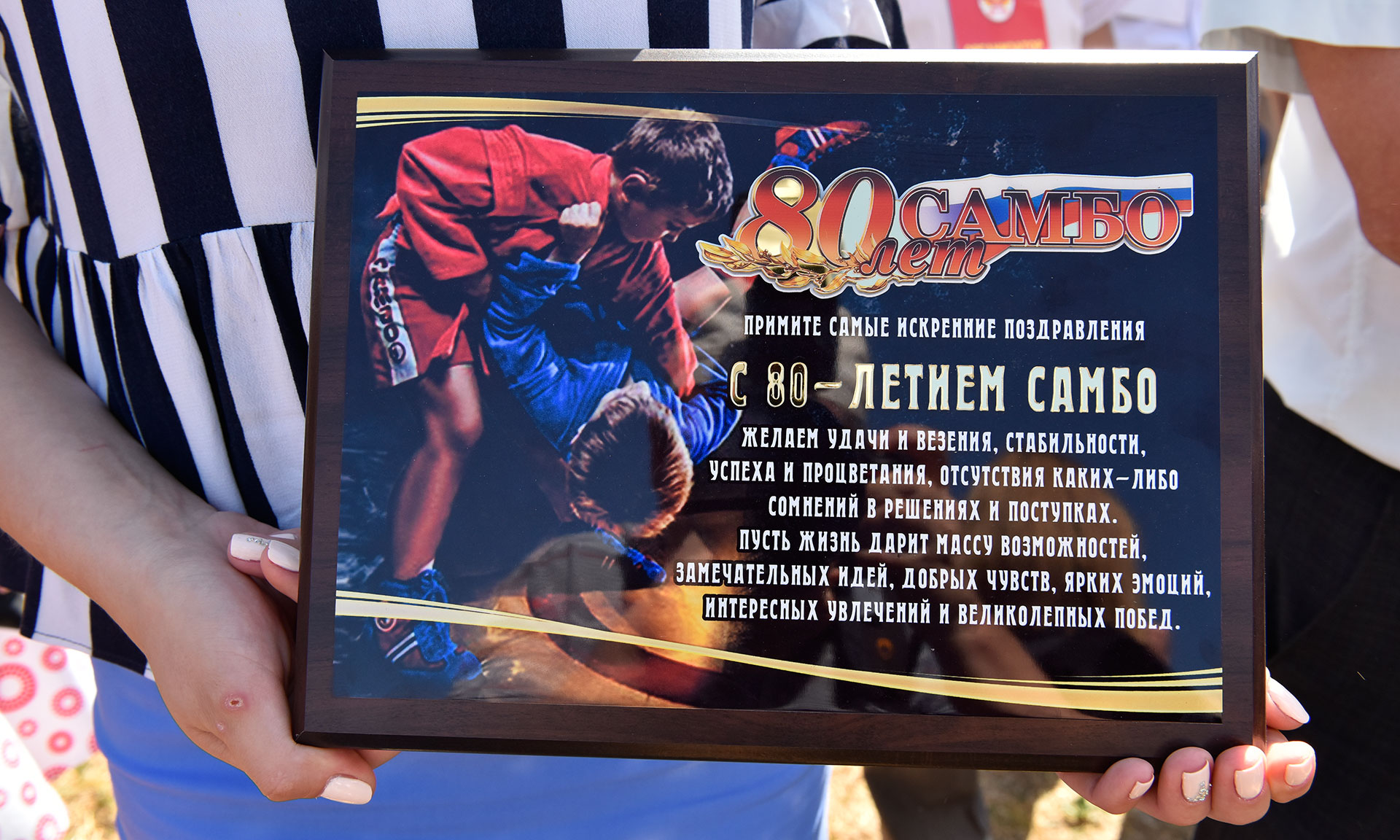 В знак особой признательности Губернатор Александр Богомаз и президент Всероссийской и Европейской федерации самбо Сергей Елисеев отметили лучших брянских самбистов и вручили им памятные плакетки в честь 80-летия со дня образования самбо. Первую плакетку глава региона подарил президенту Всероссийской и Европейской федерации самбо, также они были вручены Отару Кацанашвили, Владимиру Сивакову, Виктору Полтеву, Юрию Ремизову, Александру Елисееву, Алексею Савченко, Владимиру Клименченко, Владимиру Костаганову, Сергею Портнову, Юрию Нежлукченко, Игорю Михалину, Александру Терешку, Сергею Хотмирову, Валерию Сафонову, Владимиру Зеничеву, Анатолию Зеничеву.
