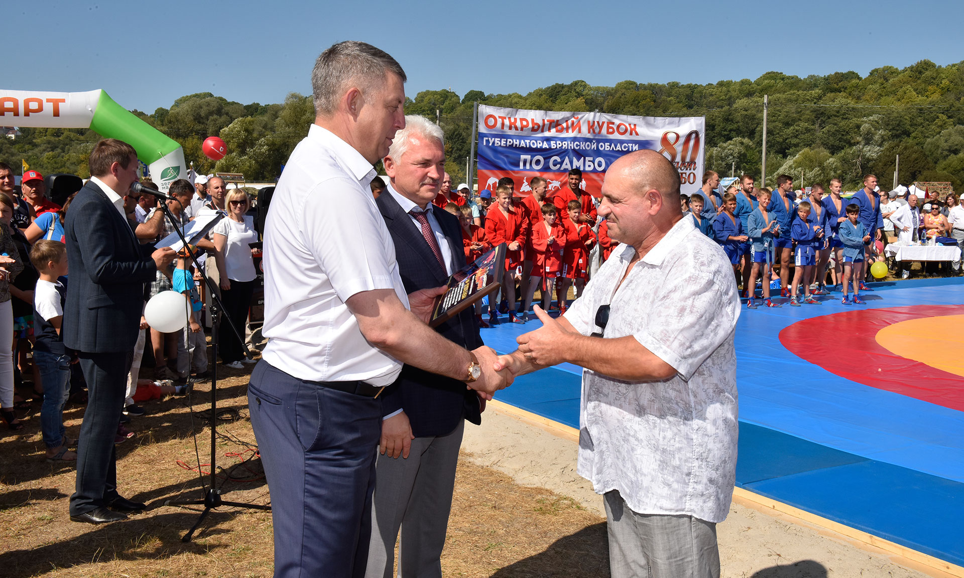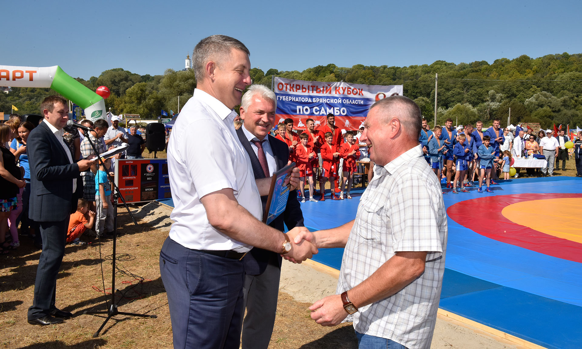 25 августа в рамках традиционной «Свенской ярмарки», собравшей на Андреевском луге более 120 тысяч гостей, состоялось торжественное открытие Кубка Губернатора Брянской области по самбо.