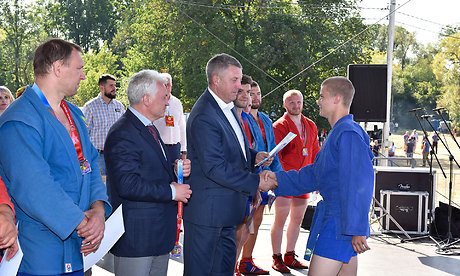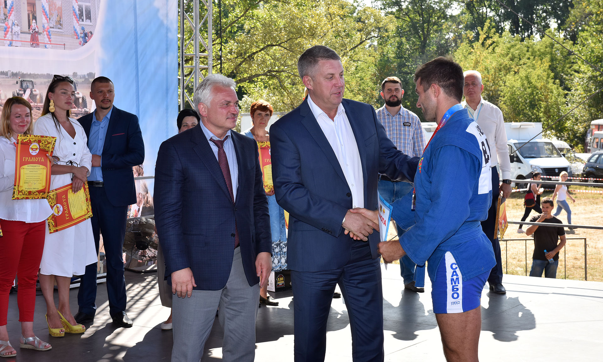 Победителей международных соревнований по самбо наградили Губернатор Брянской области Александр Богомаз и президент Всероссийской и Европейской федераций самбо Сергей Елисеев. Самбистам вручены медали, грамоты и денежные призы.