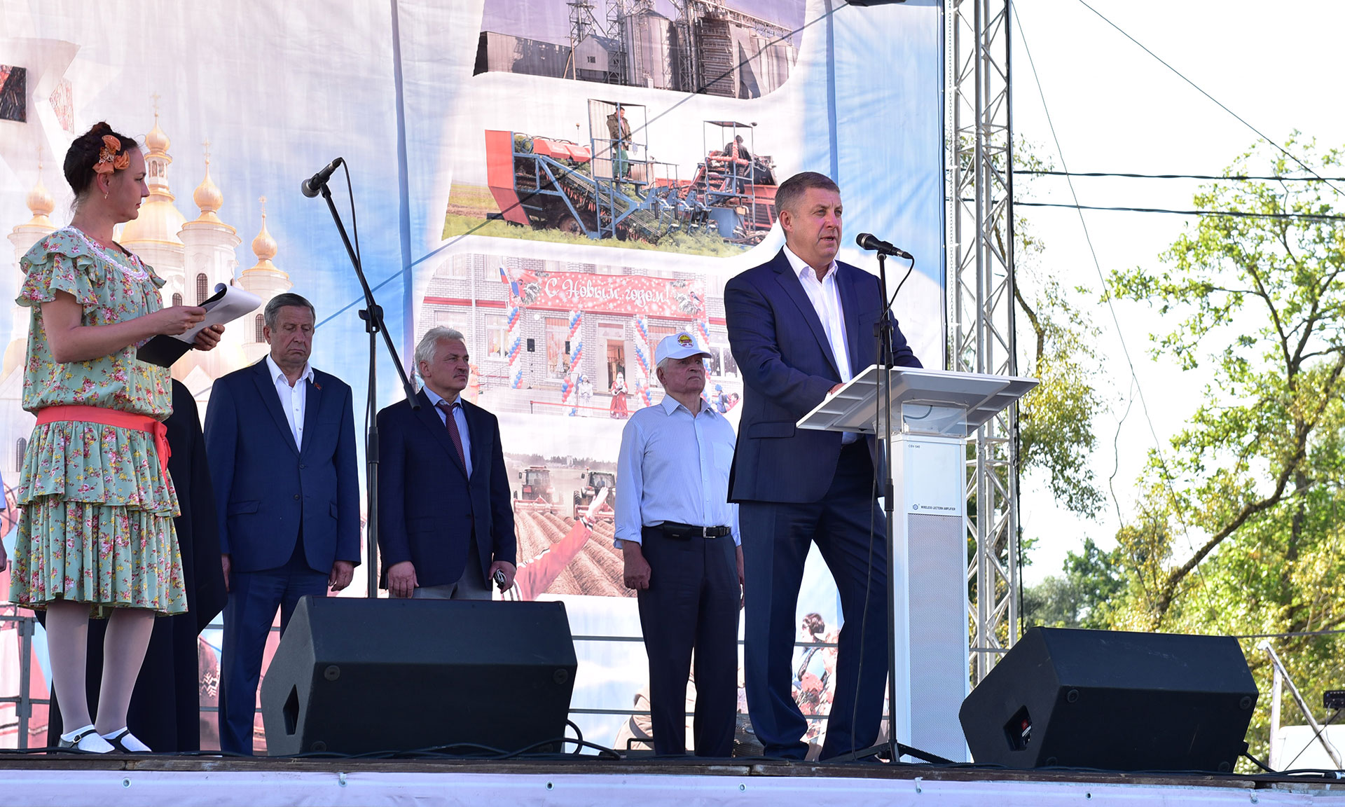 Сегодняшняя наша ярмарка проходит в юбилейный год, год освобождения нашей области от захватчиков. И я не могу не сказать слова огромной благодарности нашим ветеранам, всем, кто сражался, кто положил свои жизни во имя нашей страны, нашим предкам. Ведь у нас на Брянщине нет ни одной семьи, кого бы ни коснулась Великая Отечественная война. И сегодня я говорю слова огромной благодарности, простое русское спасибо нашим ветеранам, за их подвиг, который они совершили во имя нас, ныне живущих, за мощь и величие нашей страны, за то, что действительно их пример, их поколение по праву является поколением победителей. Их пример дает веру и уверенность в великую, могучую, непобедимую Россию. А чтобы она была непобедимая, единая и великая, нам не только нужно создать производство, чтобы работала экономика, промышленные предприятия, сельское хозяйство, нам нужно сделать самое главное — воспитать наших наследников, воспитать детей, подростков, которые будут в дальнейшем развивать нашу страну. Вот если мы не возродим нашу культуру, не воспитаем наших детей, все богатства можно потерять. Об этом говорит вся история развития мира. И сегодня мы с вами ответственны за будущее нашей малой Родины — Брянщины и за будущее нашей страны. Еще раз поздравляю всех с праздником, еще раз здоровья и успехов!