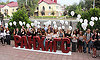 В память всех жертв терроризма была объявлена минута молчания, и в небо взлетели белые шары.