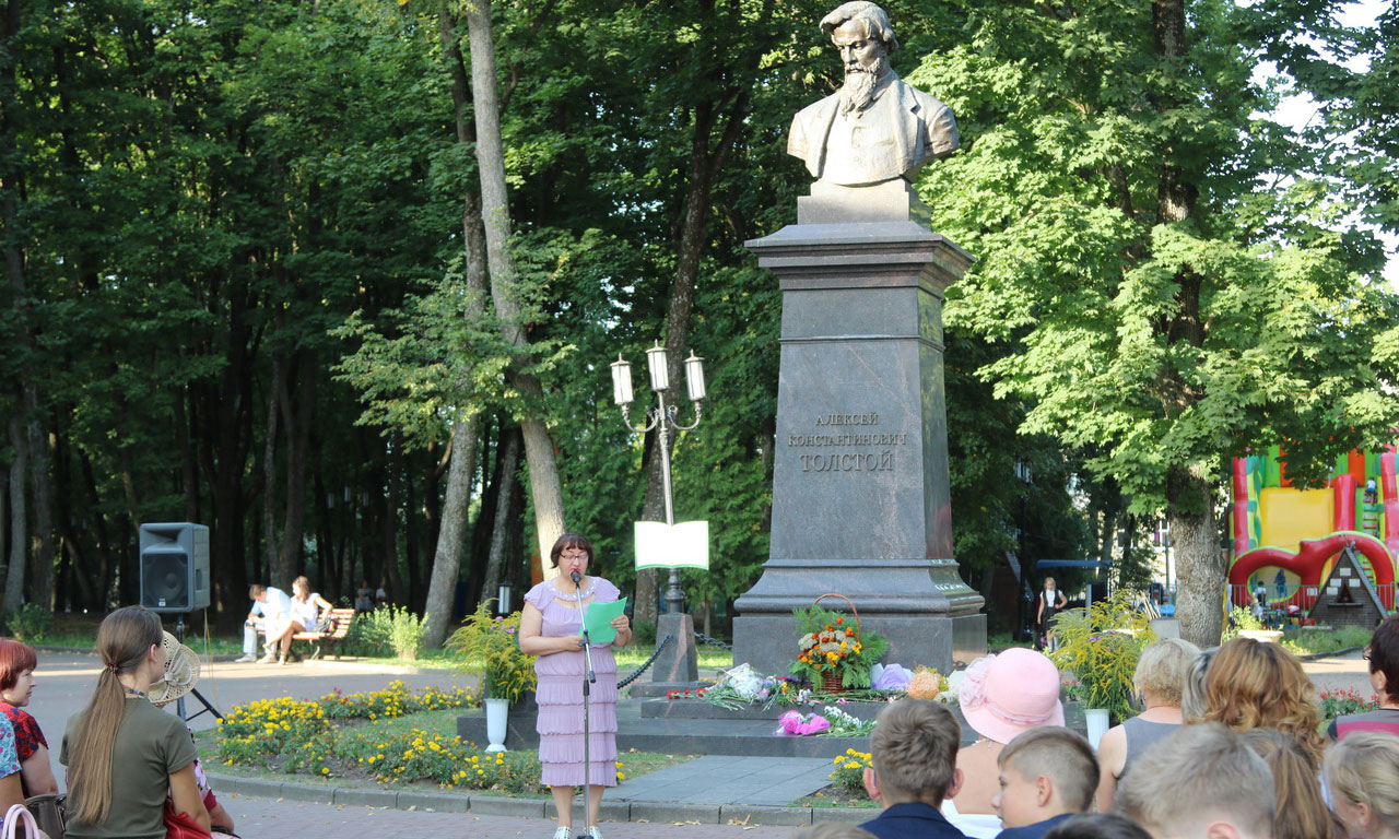 Главным действующим лицом праздника, конечно, стала поэзия Алексея Константиновича. Его стихи звучали как в исполнении любителей и знатоков его творчества, так и в исполнении артистов брянских театров. Руководитель Брянской областной общественной писательской организации «Союз писателей России» Владимир Сорочкин вместе со своими товарищами по организации — поэтами и прозаиками — заново открывали для собравшихся мир поэзии Толстого, декламируя как стихи самого поэта, так и собственные произведения о знаменитом земляке, о парке, носящем его имя, о природе родного края, которую также воспевал в своих стихах Толстой, об эпохе, в которую жил Алексей Константинович. Почувствовать её, ту самую эпоху, помогли выступления народного ансамбля бального танца «Таис» и лауреата Всероссийского конкурса вокалистов имени А. Д. Вяльцевой Людмилы Липской, которая исполнила восхитительные романсы конца XIX — начала XX веков.