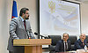Сергей Сергеев вручил Памятный адрес начальнику управления Судебного департамента в Брянской области Максиму Перлину.