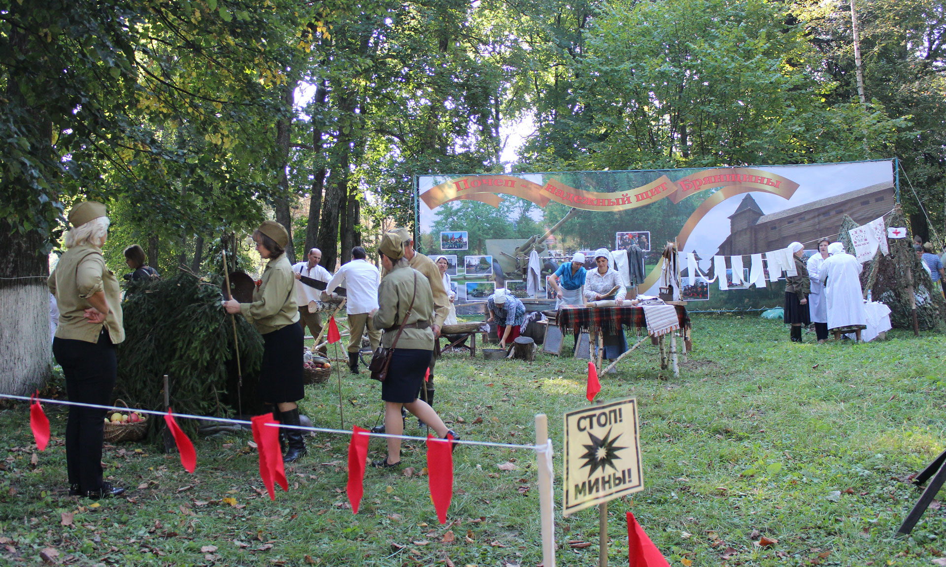 Праздник продолжился в городском парке, где развернулся партизанский привал. Фольклорный коллектив Шуморовского СДК инсценировал моменты тяжелого труда женщин в тылу. В качестве литературного привала работала площадка, посвященная Матвею Блантеру. А рядом военно-полевая кухня угощала всех ароматной кашей.