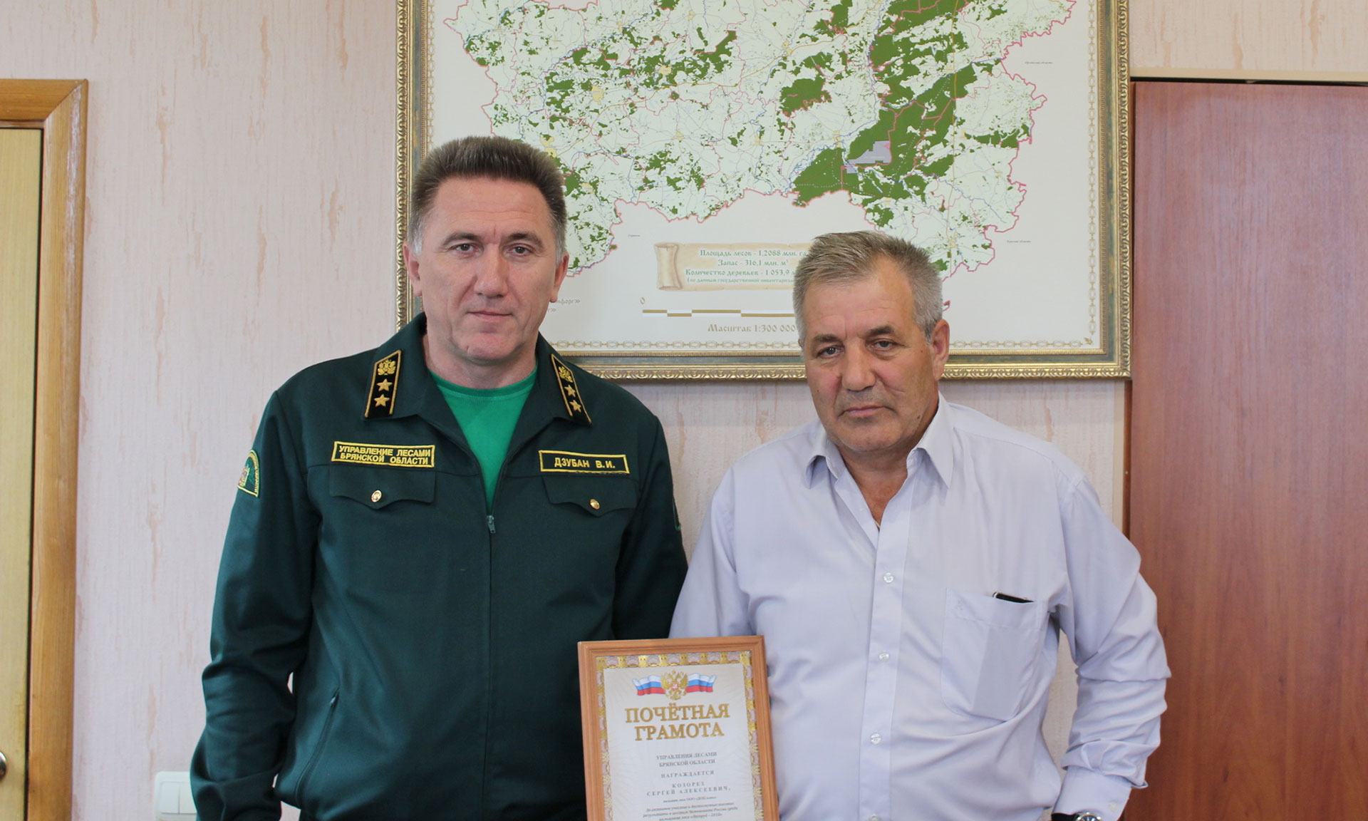 В конце встречи Владимир Дзубан вручил почетные грамоты управления лесами членам сборной Брянской области за высокие результаты, достигнутые на чемпионате России среди вальщиков леса «Лесоруб-2018»