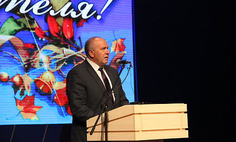— Уважаемые коллеги, ветераны педагогического труда, гости! Позвольте мне поздравить вас с нашим замечательным праздником, Днем учителя! Проходят годы, время не стоит на месте, и с каждым годом время набирает свой ход, меняет мир, наше отношение к миру, меняет нас самих. Не меняется только одно: мы должны жить, работать, творить во имя светлого будущего наших детей. Профессия учителя — наверное, единственная в мире, где кроме профессиональных качеств нужно самое главное качество — любовь к детям. Трудно сказать, где начинается и где заканчивается влияние учителя на ученика, оно проходит через всю жизнь. Наш Президент Владимир Владимирович Путин очень правильно сказал о том, что будущее нашей великой России в настоящий момент сидит за школьными партами или на студенческой скамье средних и высших учебных заведений. И от того, как мы с вами, учителя, сформируем знания, мировоззрение этих молодых людей, так и будет жить наша великая Россия в будущем. Я глубоко уверен, что те люди, которые работают с подрастающим поколением, достойно справляются со своими обязанностями!