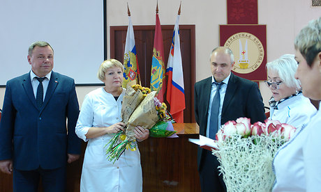 — Уважаемые коллеги! Сегодня мы собрались здесь для вручения заслуженной награды почетное звание «Заслуженный врач Российской Федерации» заведующей пульмонологическим отделением ГАУЗ «Брянская областная больница № 1» Кулешовой Ларисе Евгеньевне.