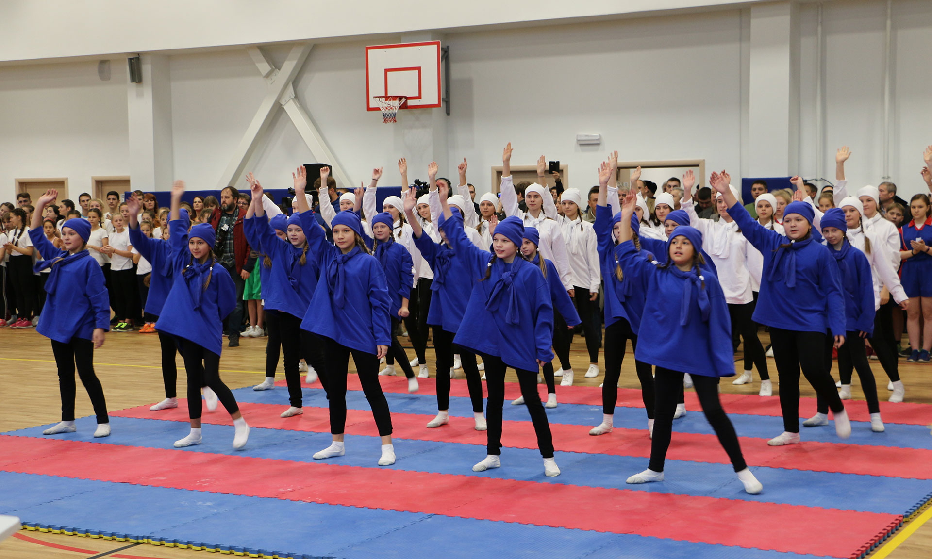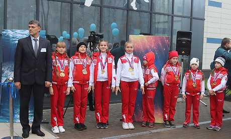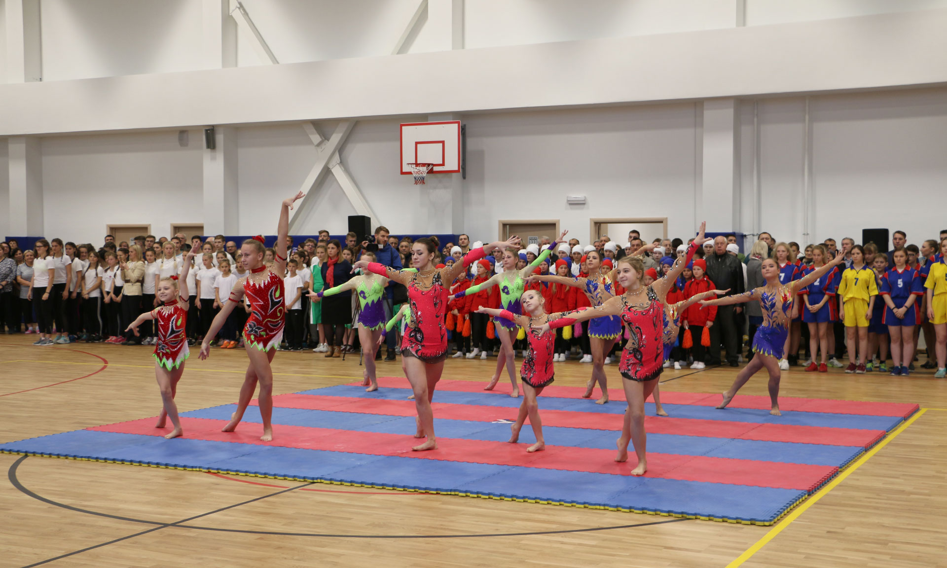 Гостей на дорожке, ведущей к ФОКу, приветствовали воспитанники спортивных школ, учащиеся, жители Клинцов. В большом игровом зале почетных гостей встречали юные воспитанники спортивных секций и их тренеры, родители. Спортивный праздник открыло выступление танцевального ансамбля «Акварель».
