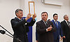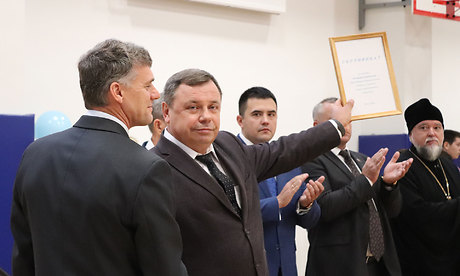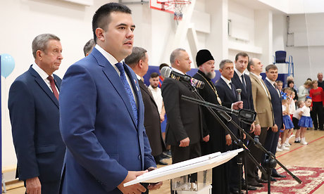 Символический ключ директору физкультурно-оздоровительного комплекса Михаилу Тригубенко вручил начальник производственного отдела Управления площадных объектов ООО «Газпром инвестгазификация» Максим Матов.