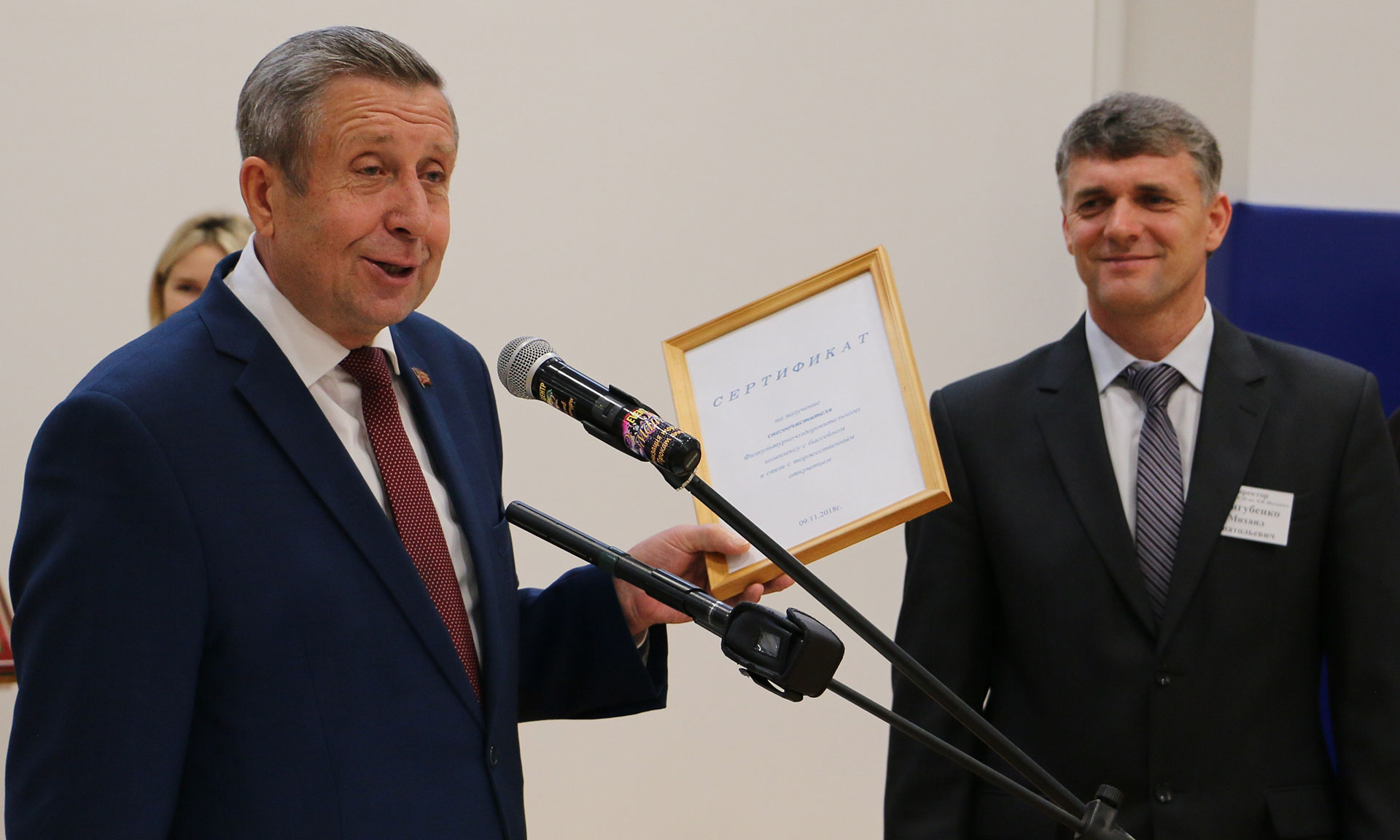Стоит отметить, что именно спорт и здоровый образ жизни являются сегодня одним из приоритетных направлений государственной политики и национальной стратегии. Что особенно приятно, Брянская область в этом направлении занимает лидирующие позиции. Ваш город является не только историческим и географическим центром на юго-западе нашего региона. Сегодня Клинцы — это духовный, культурный, социально развитый центр всего юго-западного направления. Именно поэтому Правительство области, наша областная Дума, всегда уделяют внимание вашему городу. В 2015 году здесь была открыта Ледовая арена, в 2016 — многофункциональная спортивная площадка на территории Гимназии № 1. И вот сегодня настала очередь современного спортивно-физкультурного комплекса.