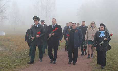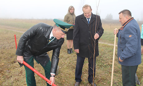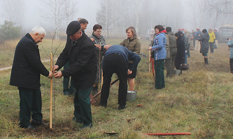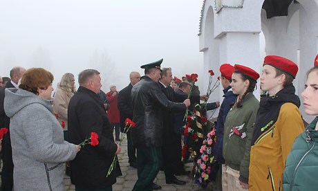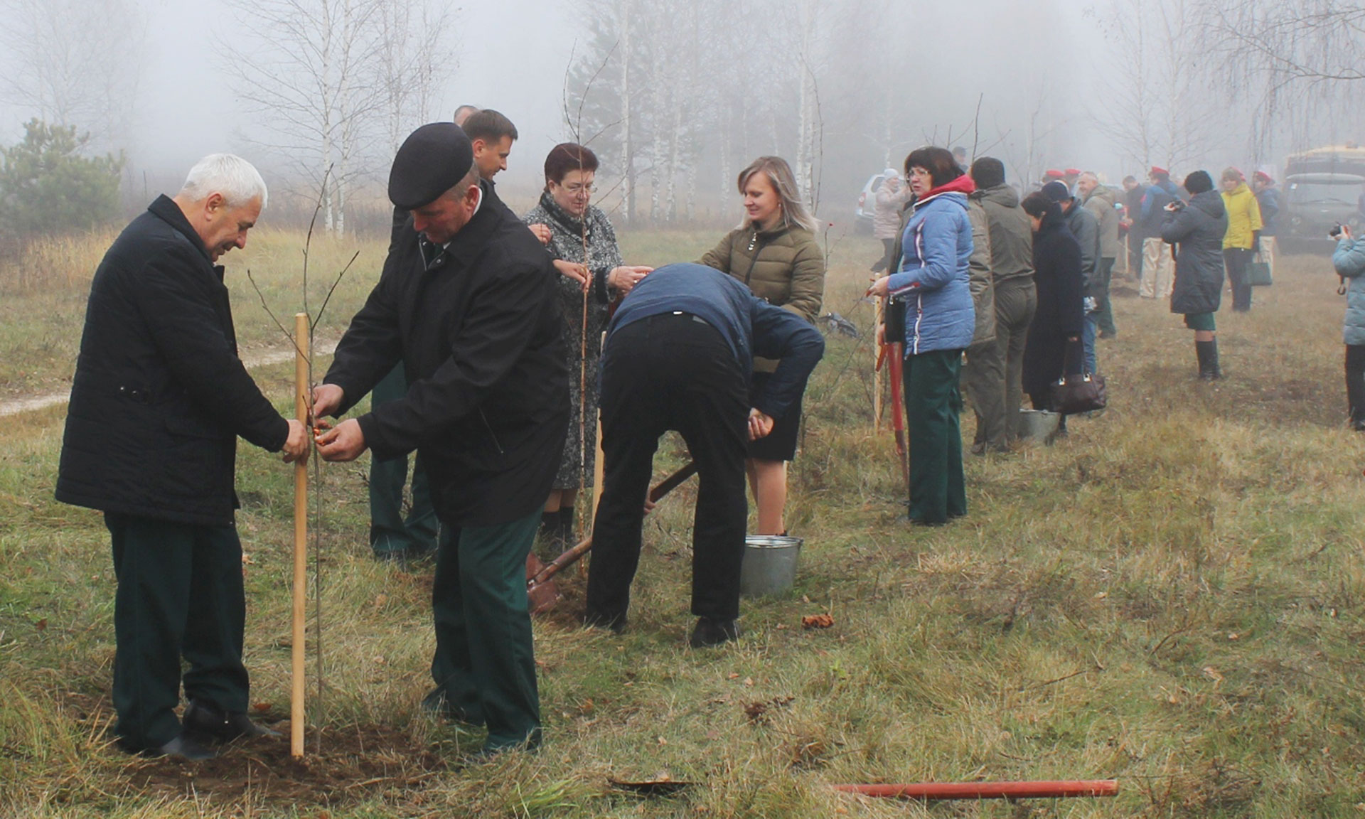 Присутствующие почтили минутой молчания память погибших, возложили цветы к памятнику и высадили молодые деревья берёз, лип и рябин как символ вечной жизни на земле, повязав на них Георгиевские ленточки.