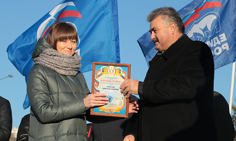 Во время торжественной церемонии открытия Алексей Колесников наградил руководителя и инженера подрядной организации ООО «Фараон+" почетными грамотами Советской районной администрации за добросовестный труд. После традиционного перерезания красной ленточки экскурсию по скверу провела автор проекта благоустройства, Почетный архитектор РФ, руководитель проектного института «Акварель» Ольга Грозева. Она рассказала гостям об общей концепции сквера и его деталях.