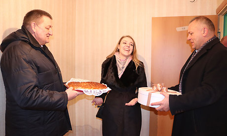 Александр Резунов и Валентин Суббот преподнесли девушки подарок на новоселье и каравай. Вместе с Игорем Тимошиным, Олегом Шкуратовым, Александром Морозовым, Виталием Беляем осмотрели квартиру в новом доме, где будет жить Ольга. Строители выполнили все ремонтные работы, установили плиту и сантехнику. В самое ближайшее время девушка в кругу близких и друзей планирует отметить новоселье.