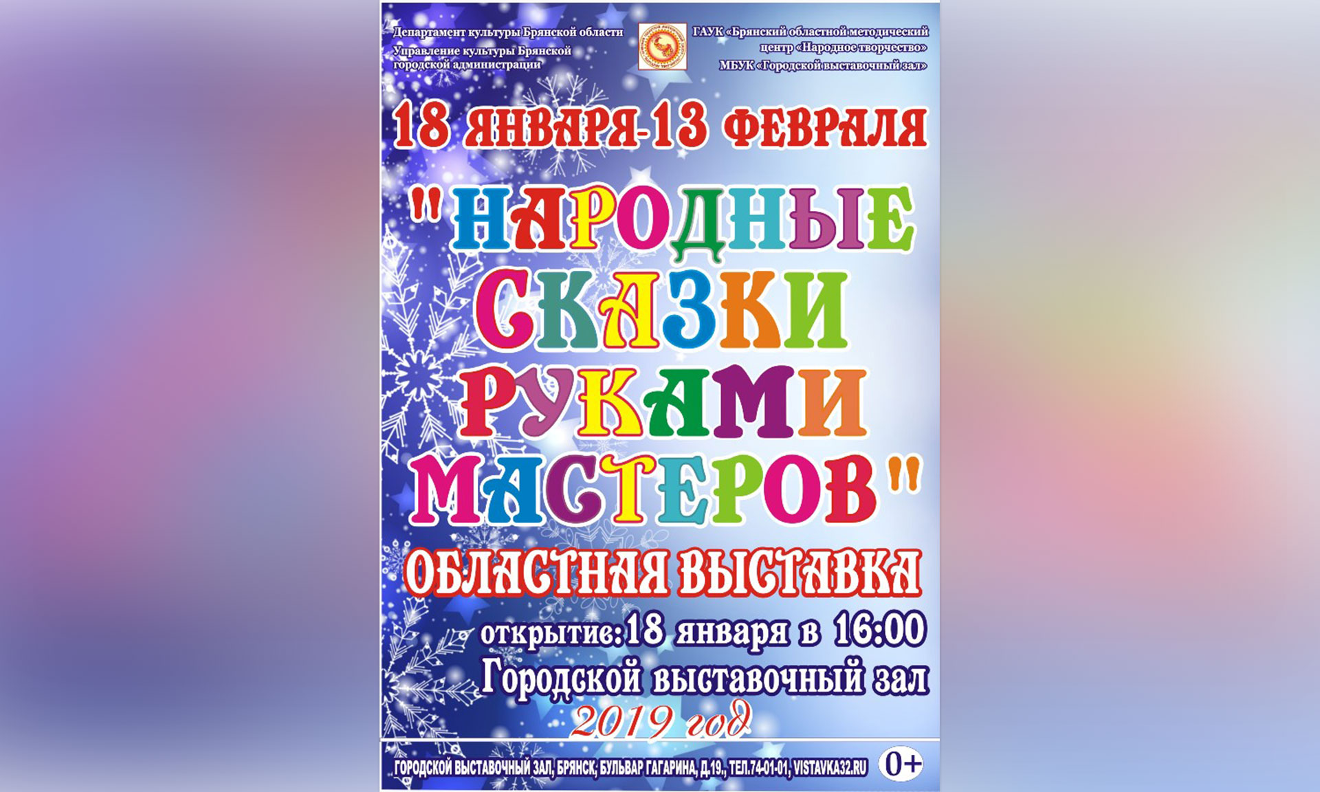 18 января 2019 года в 16.00 часов в Городском выставочном зале (Бульвар Гагарина, 19) состоится открытие областной выставки «Народные сказки руками мастеров».