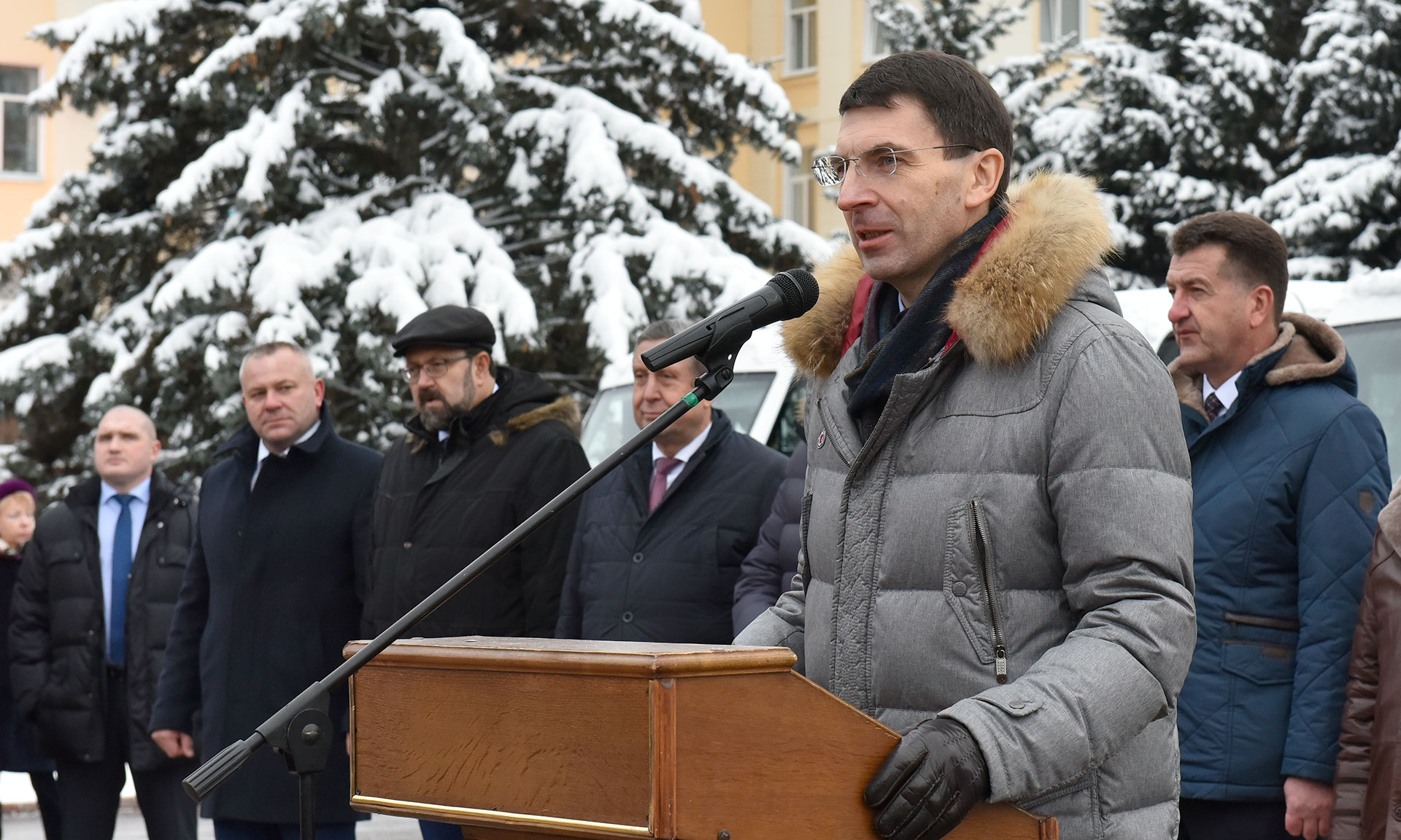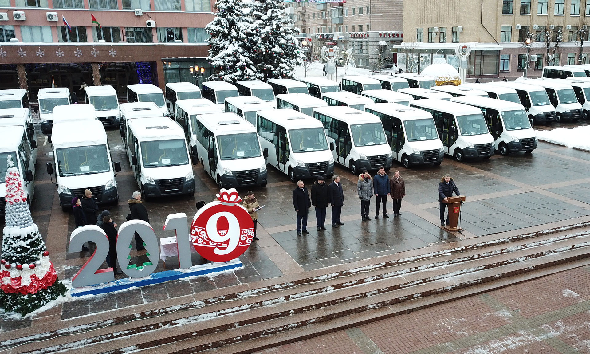 28 декабря в Брянске прошла торжественная церемония вручения автобусов муниципальным образованиям и автотранспортным предприятиям Брянской области. В церемонии приняли участие полномочный представитель Президента Российской Федерации в Центральном федеральном округе Игорь Щёголев, Губернатор Брянской области Александр Богомаз, председатель Брянской областной Думы Владимир Попков, временно исполняющий обязанности главного федерального инспектора по Брянской области Михаил Калашников, депутат Государственной Думы Валентин Суббот, глава города Брянска Александр Хлиманков, глава Брянской городской администрации Александр Макаров, заместители Губернатора Брянской области, депутаты Брянской областной Думы, руководители исполнительных органов государственной власти Брянской области, руководители муниципальных образований Брянской области, руководители автотранспортных предприятий.