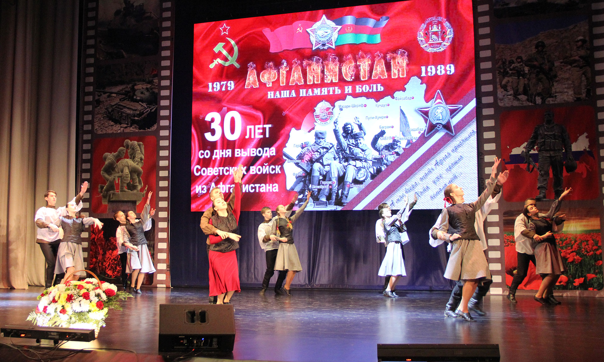В фойе Дворца детского и юношеского творчества для гостей звучали песни военных лет. На сцене были размещены баннеры и фотографии тех, кто связал свою жизнь с защитой своей страны. Тех, кто выполнял интернациональный долг за пределами Родины. В этот день в зрительном зале собрались участники боевых действий, родные и близкие воинов-афганцев, ветераны Великой Отечественной войны, юнармейцы, представители общественных организаций.