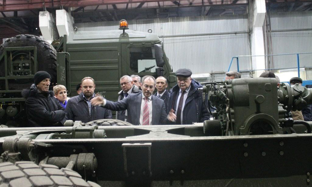 В завершение заседания руководители предприятий побывали в цехах Брянского автомобильного завода, первый заместитель гендиректора предприятия Дмитрий Олейник познакомил участников совещания со всеми этапами производства специальных колесных шасси и тягачей.
