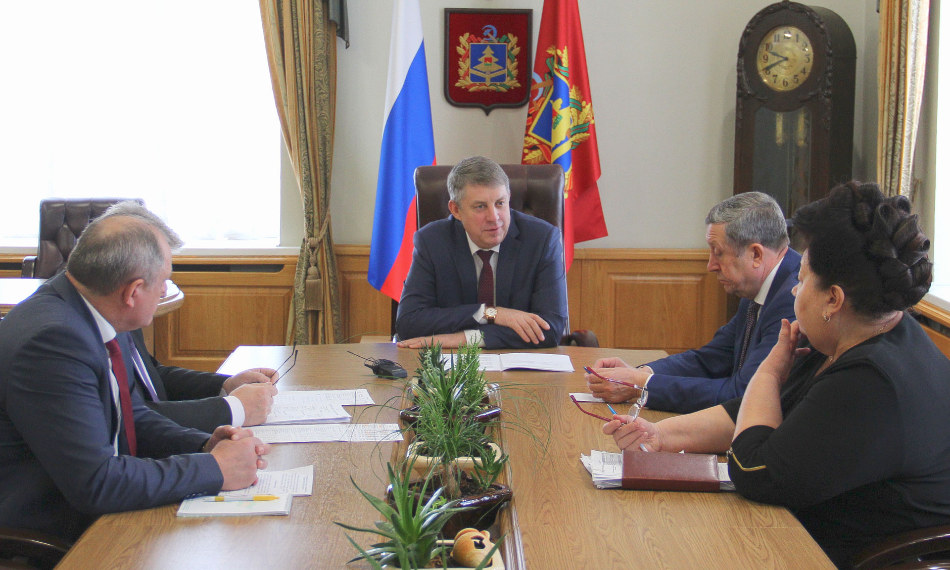 Основным вопросом повестки рабочего совещания стало исполнение наказов жителей Погарского района, которые они высказывали на встрече с руководством района и Губернатором.
