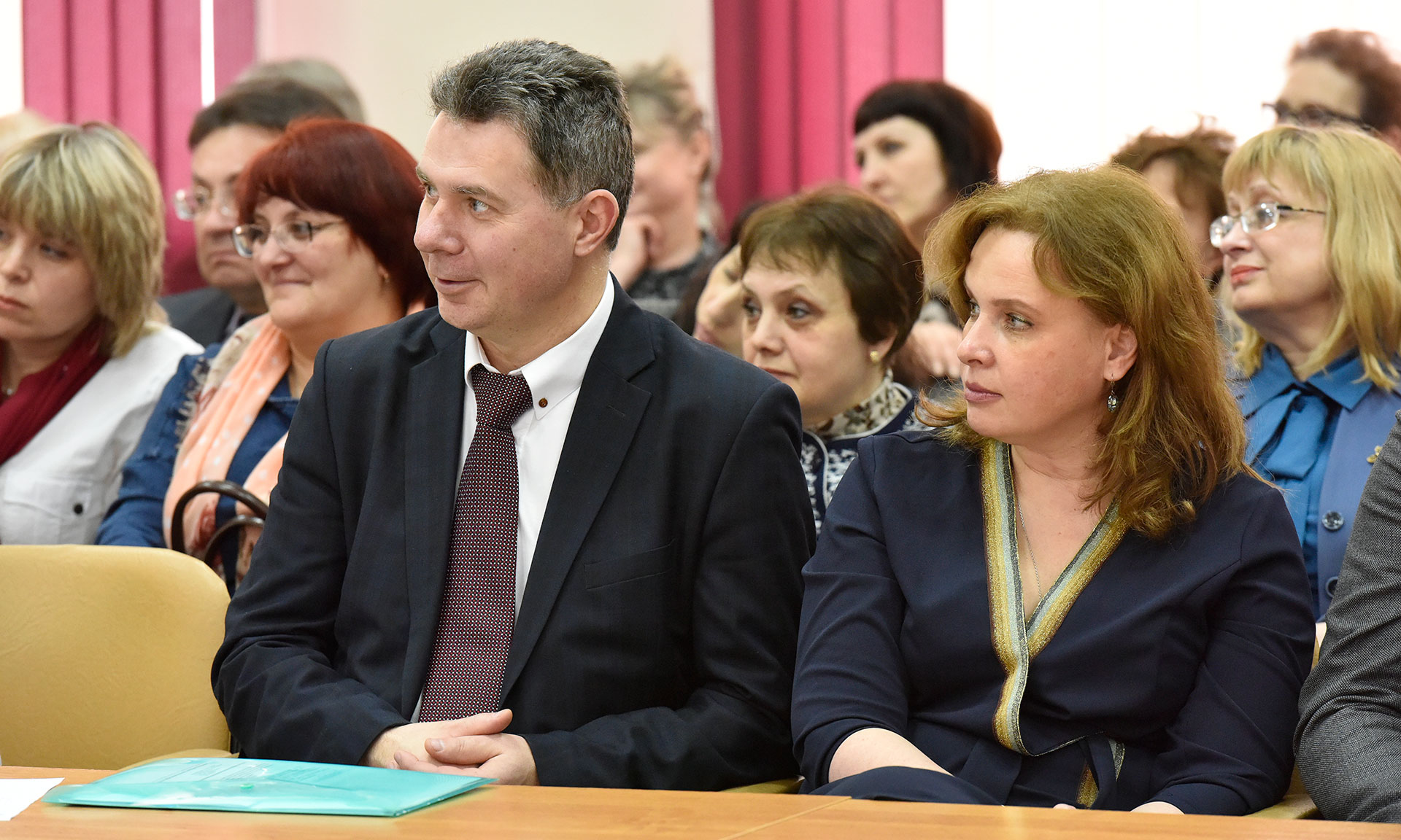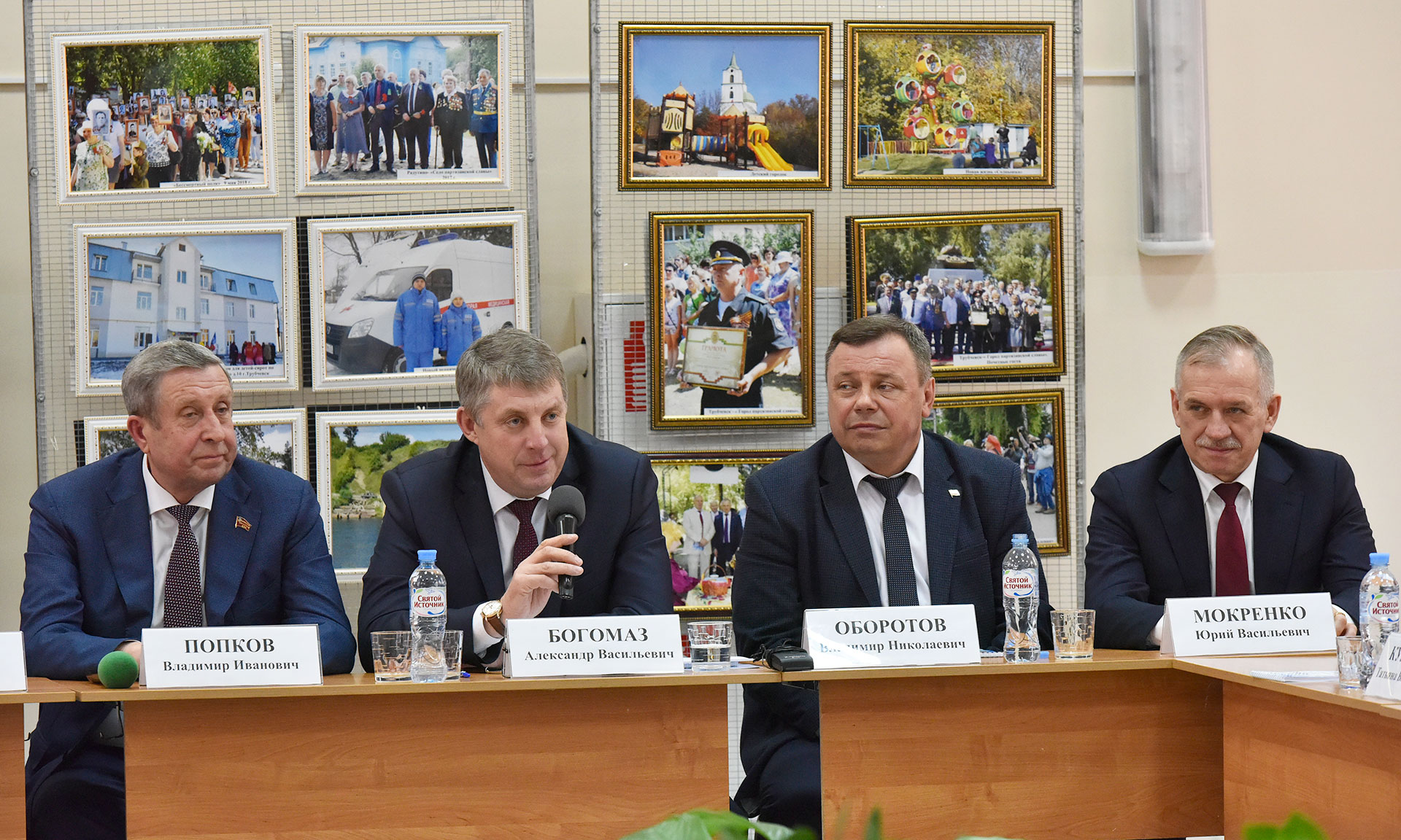 На встречу с педагогами вместе с Губернатором Александром Богомазом, председателем Брянской областной Думы Владимиром Попковым приехали заместители Губернатора Владимир Оборотов и Юрий Мокренко, директор департамента образования и науки Брянской области Татьяна Кулешова.